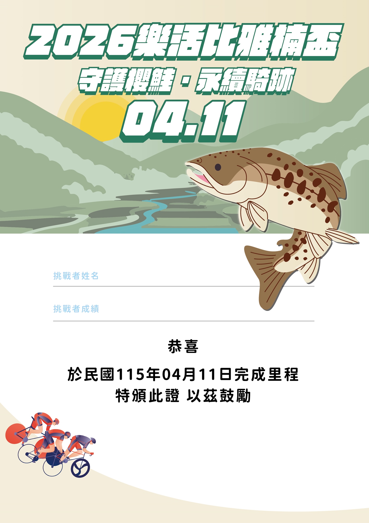 2026 第四屆樂活比雅楠盃,是一場結合自行車運動、生態保育、泰雅文化與永續旅行的公益行動。活動以臺灣國寶魚臺灣櫻花鉤吻鮭為守護核心,透過單車約騎與生態參訪,帶領參與者深入宜蘭縣大同鄉南山村,認識羅葉尾溪櫻花鉤吻鮭自然復育成果,並理解山林與溪流生態的重要價值。