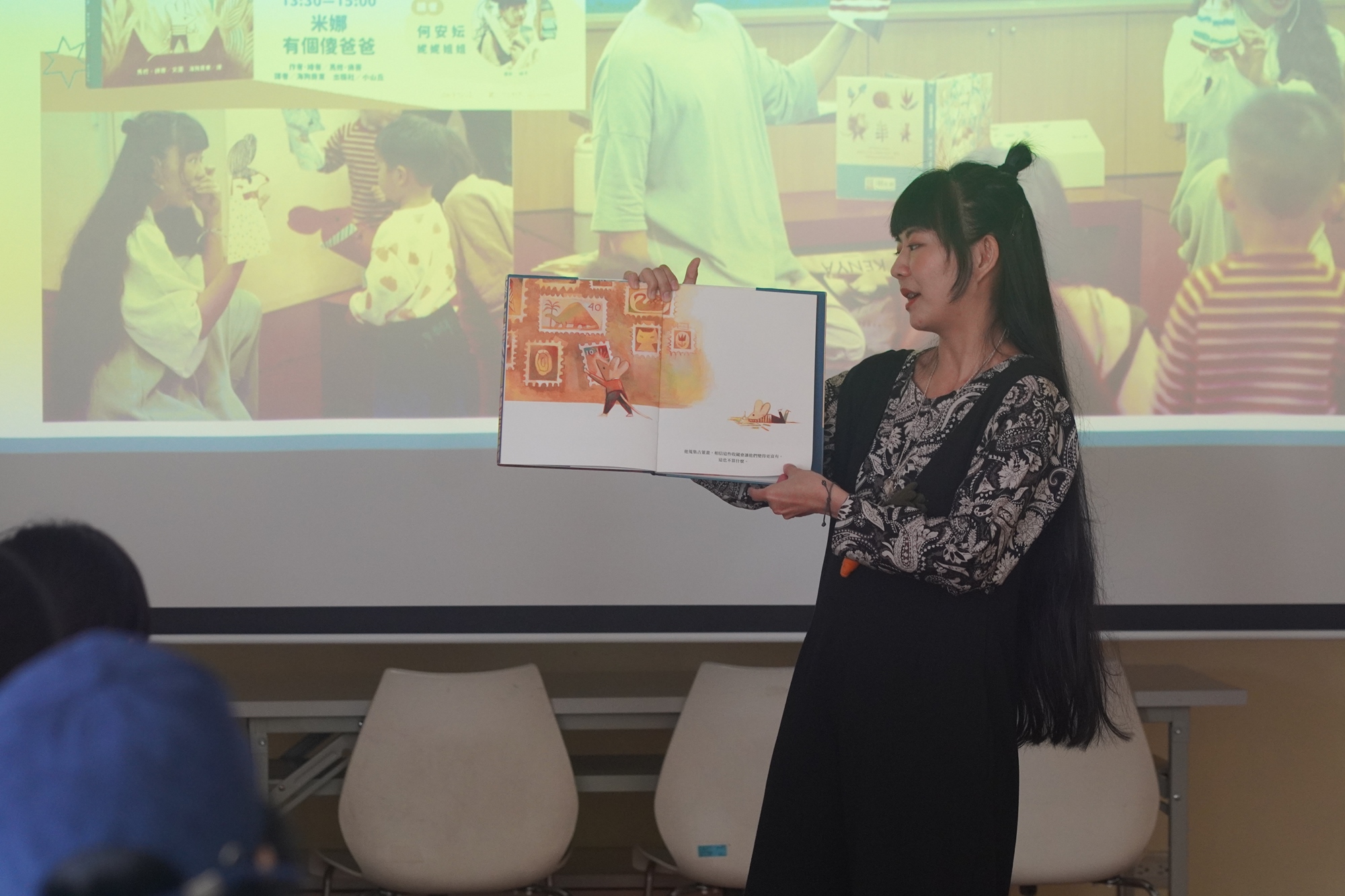 接著第二堂「偶的變身」課程,則是由社團法人美感細胞協會執行長,同時也是繪本《偶的變身》偶戲故事繪本計畫主持人何富菁,帶來第一線的創作經驗,分享偶戲文化怎麼變成繪本故事,也會介紹整體設計、創作靈感來源和教案延伸的方式。原來偶戲不只是劇場裡的演出,也可以是孩子們學習想像力和文化故事的好幫手,讓偶戲在教學中發揮更多元的可能性。