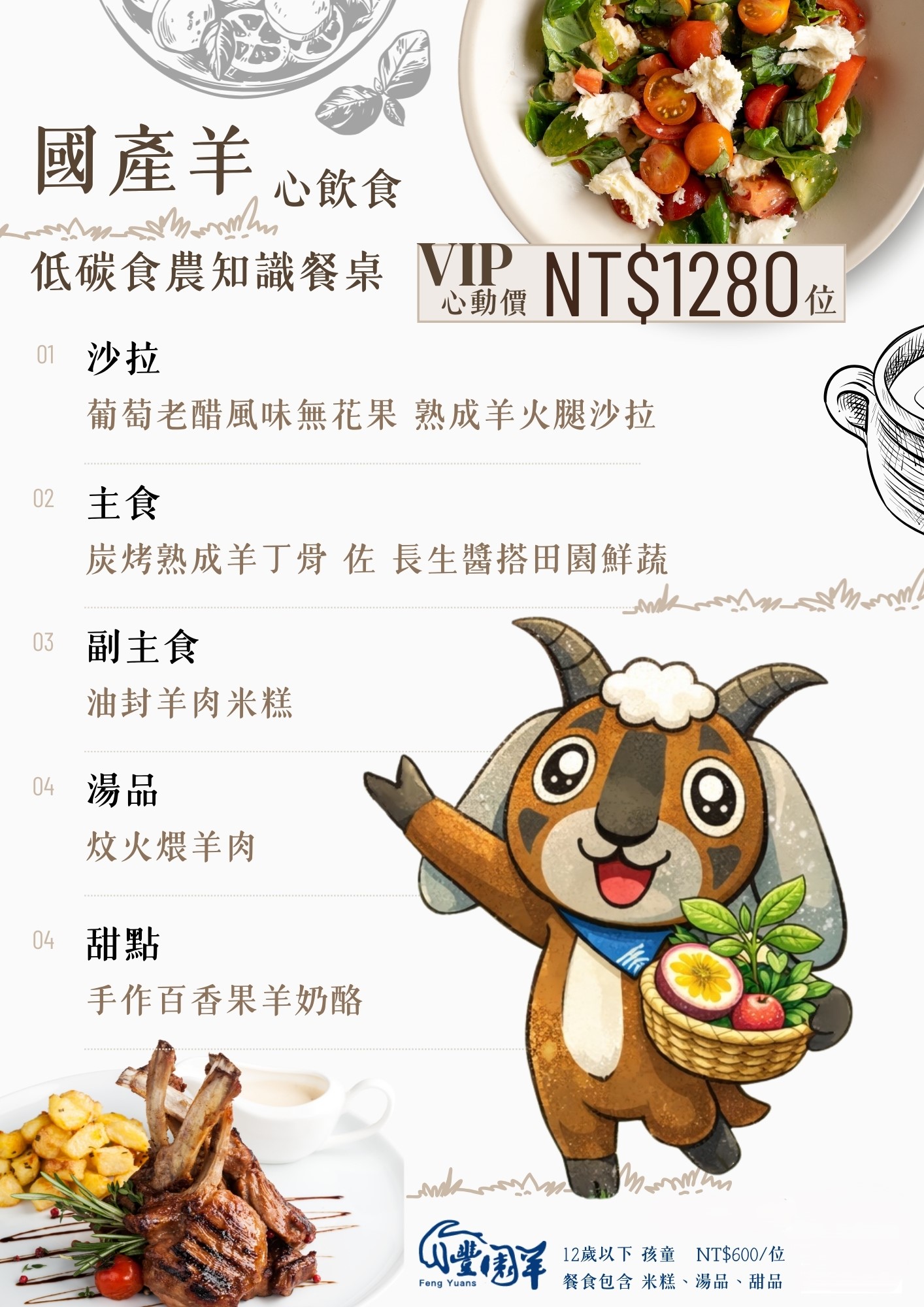 牧場二代阿建的帶領『豐園羊牧場』轉型由養殖端走向銷售端,阿建表示:其實山羊肉各個部位肉質特性不同,透過專業的分切技術充分展現每塊羊肉質特性,針對不同的吃法去挑選部位食用,打破羊肉只能作為羊肉爐的傳統思維,溶入了中西式料理模式、煎、烤、燉、涮,讓更多人知道台灣羊肉的優質鮮美。