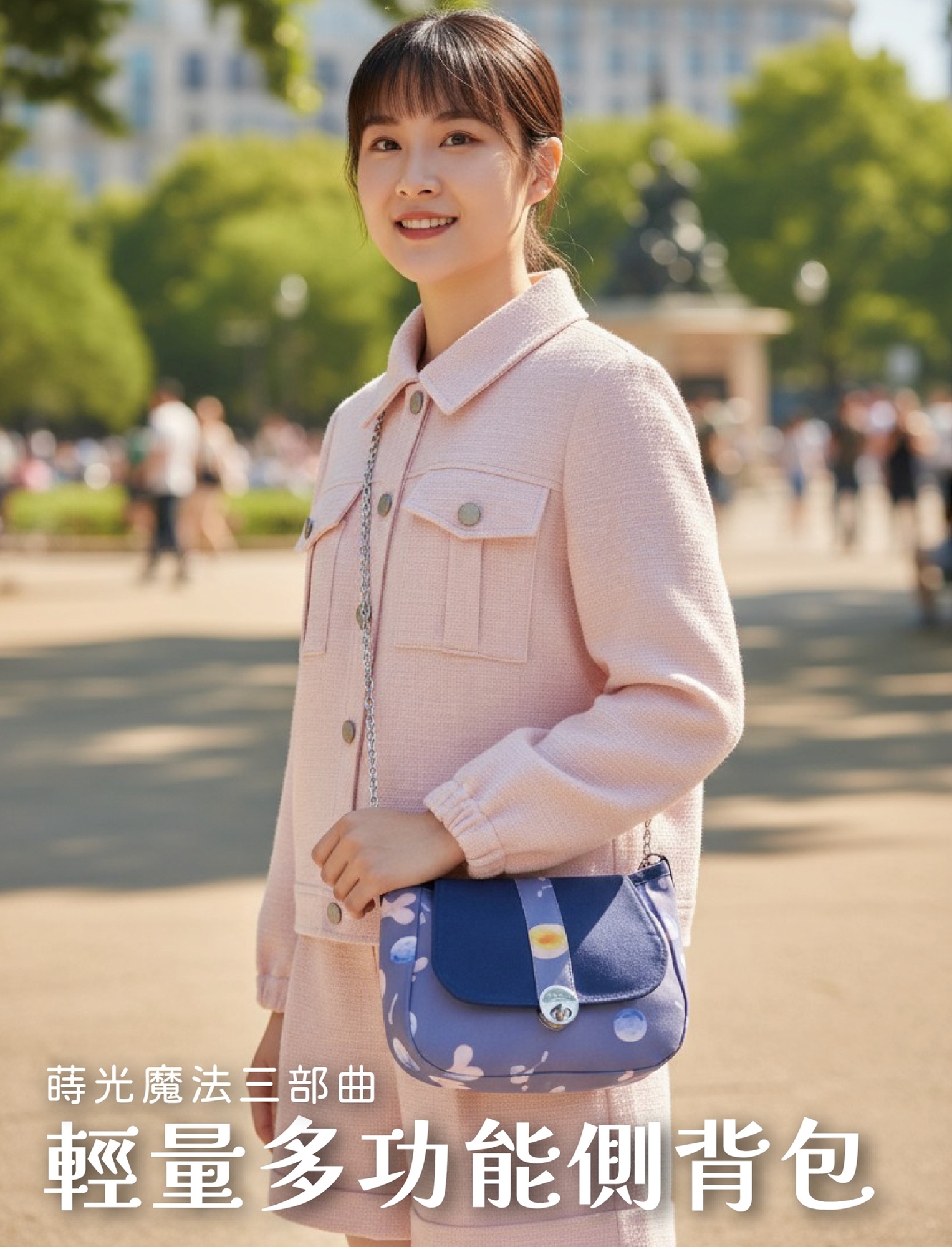 **輕量多功能側背包**:鍊條可調整,肩背側背都OK,時尚感滿分!