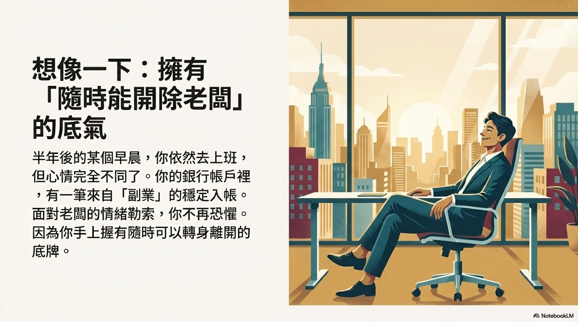 這不是一堂讓你聽完很爽的雞湯課,這是一份從 0 到 1,帶你低風險拿到第一筆斜槓副業收入的作戰地圖。