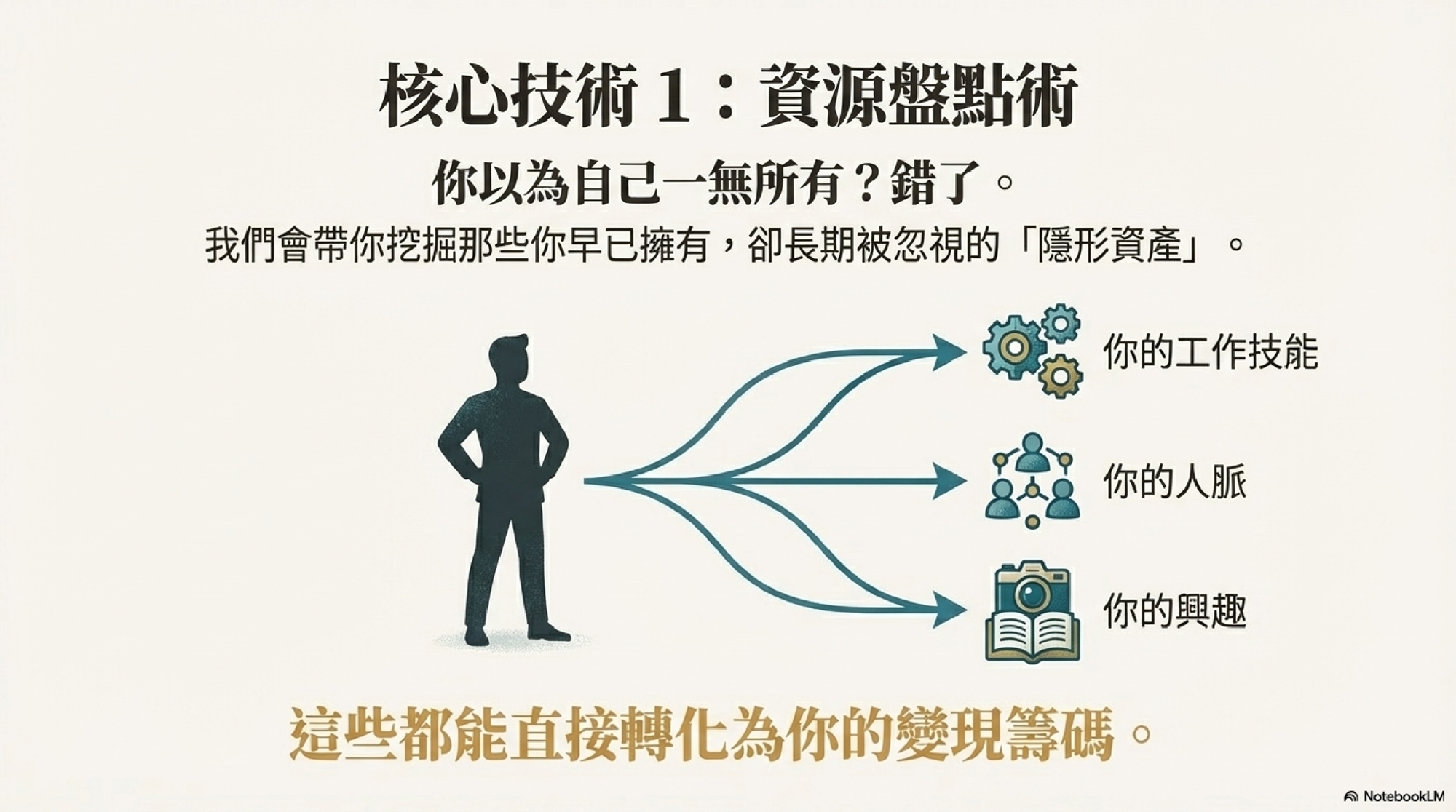 這可能是你的某項工作技能、人脈,甚至是你的興趣,這些都能直接轉化為變現籌碼。