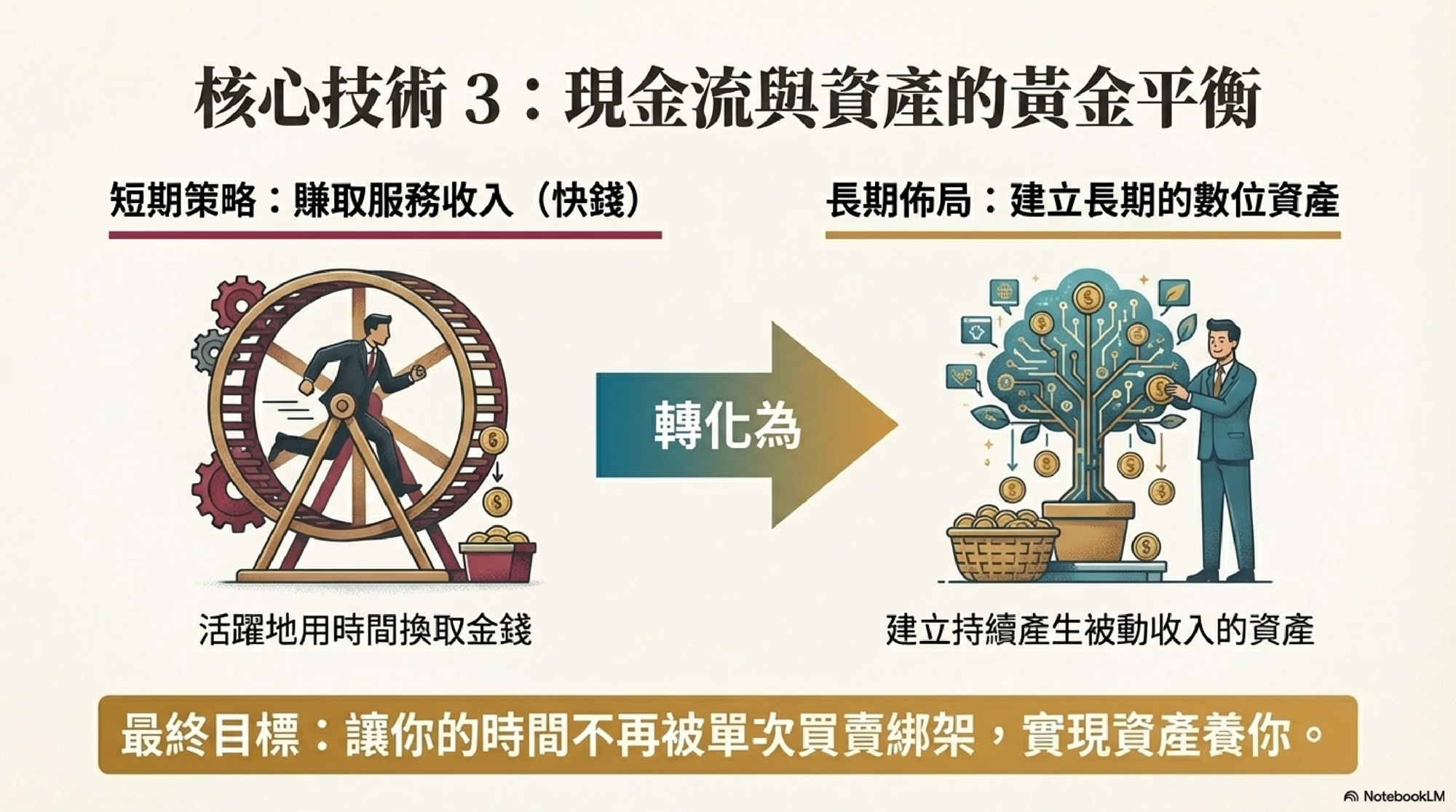 我會教你如何將短期的服務收入,轉化為長期的數位資產,讓你的時間不再被單次買賣綁架。