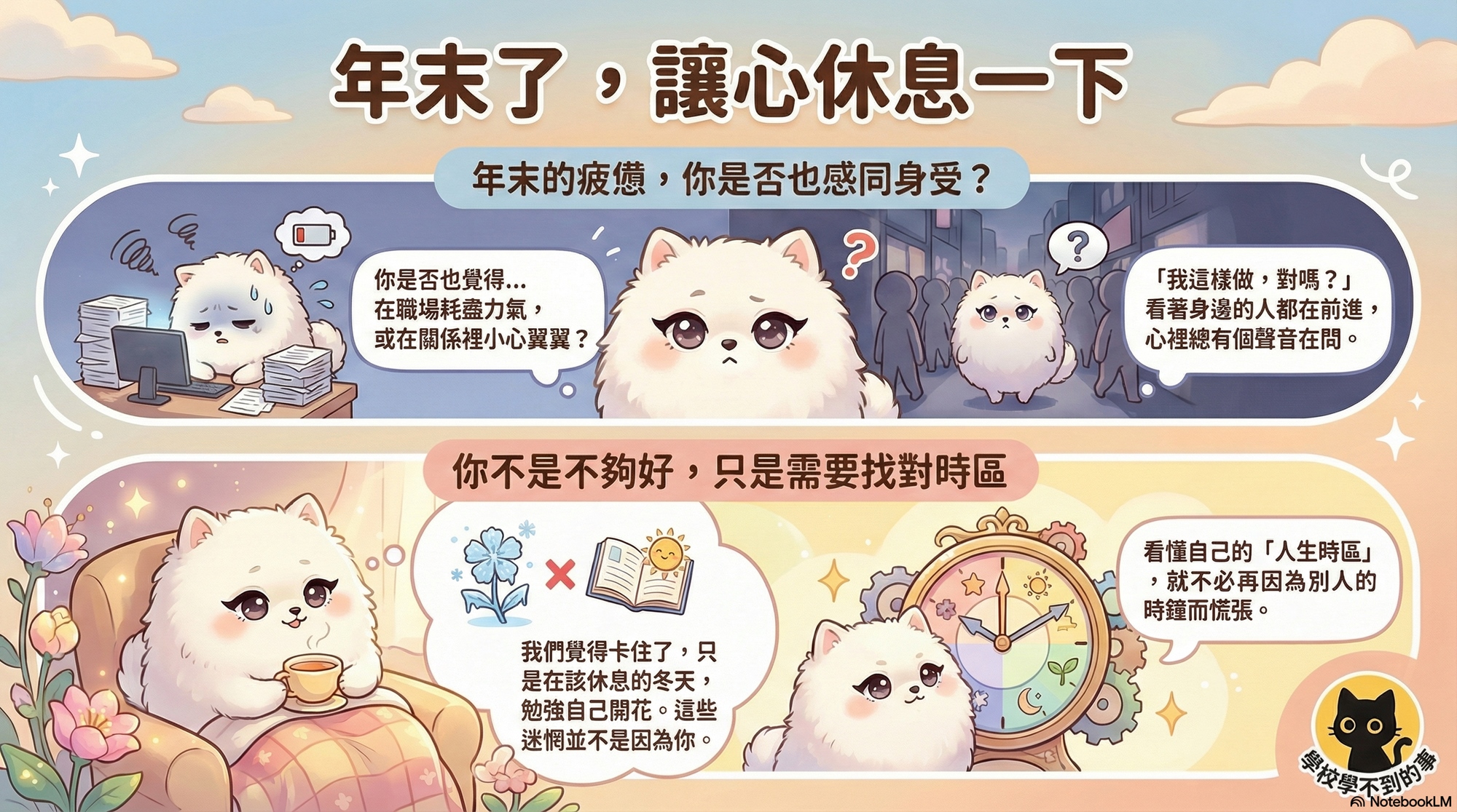 生命有它原本的季節,也有它獨特的引力。 當我們看懂了自己的「人生時區」,就不必再因為別人的時鐘而慌張。