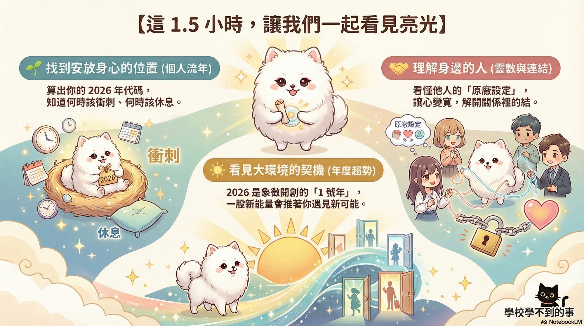 這不只是一堂分析運勢的講座,更是一次與自己對話的機會。 喬伊小姐將透過「生命靈數」,為你解讀 2026 年的訊號,把未知帶來的恐懼,轉化為前進的底氣。