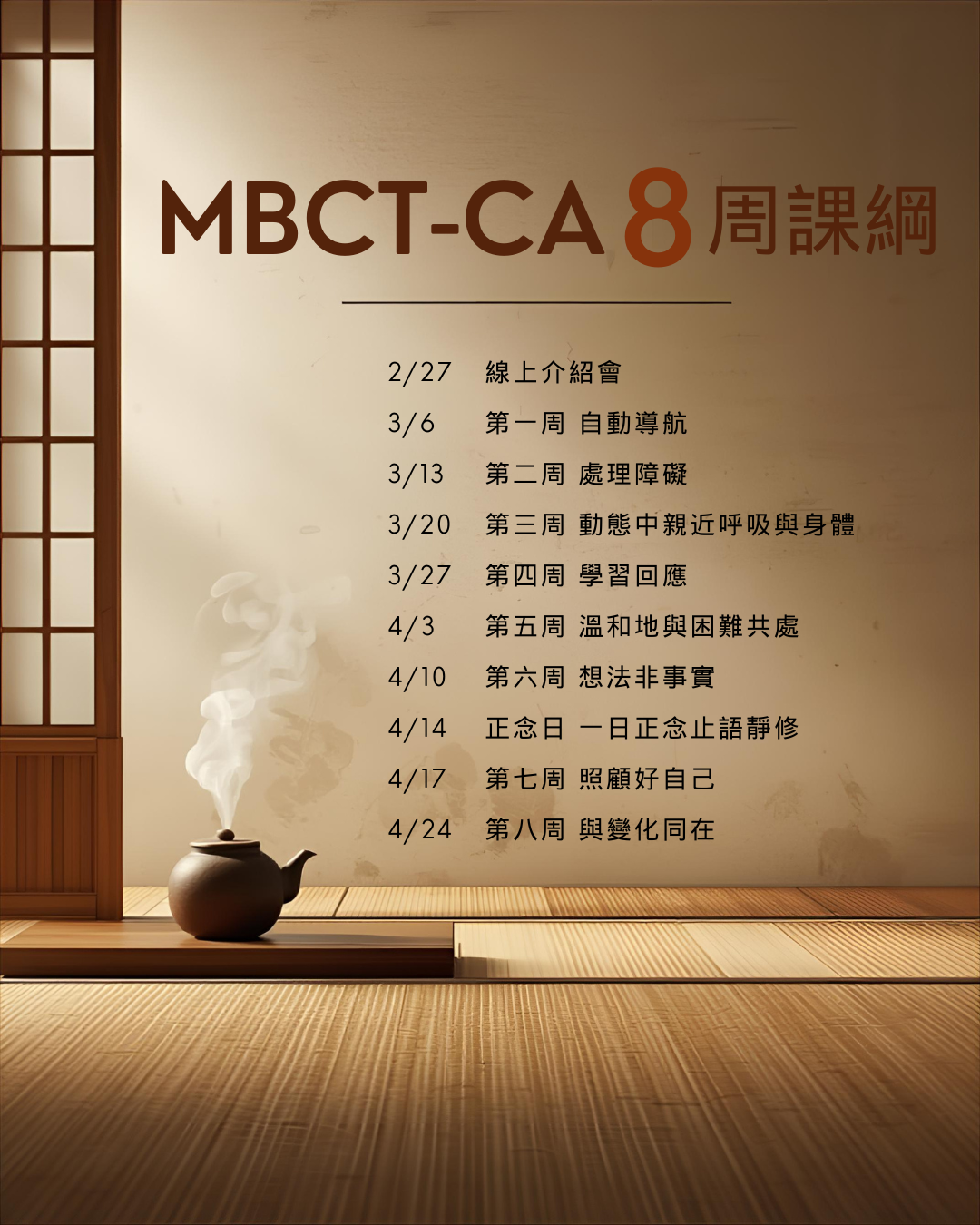 - 正念止語靜修日 : 2026/4/14 (二) 9:30-14:00