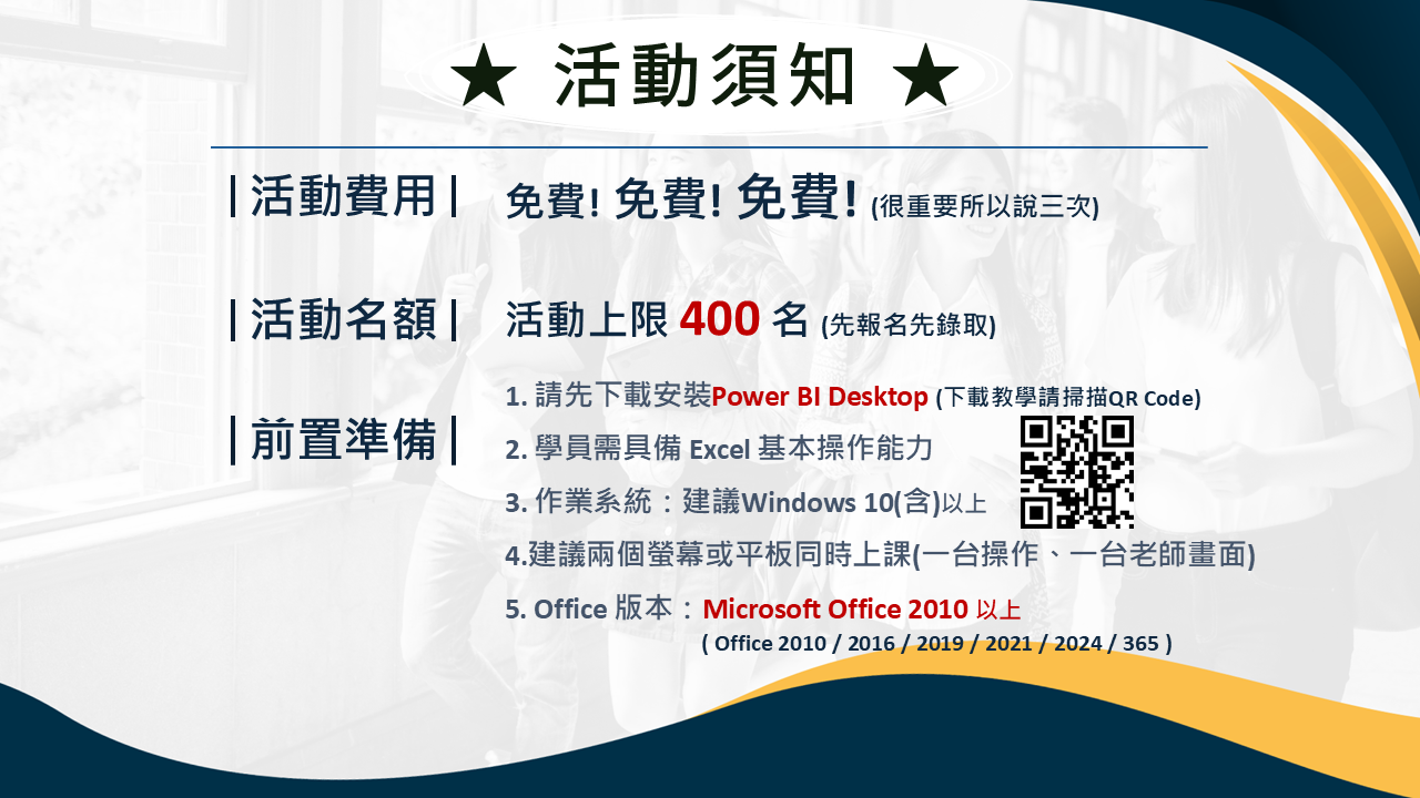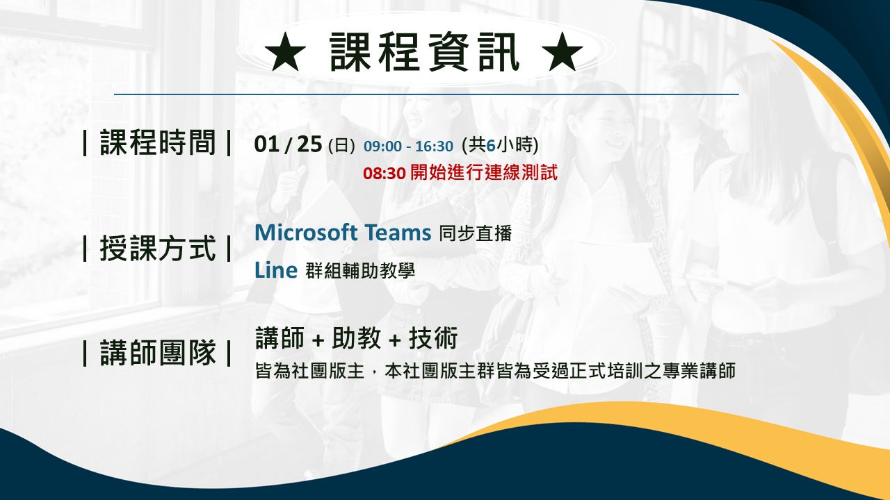 本活動使用Microsoft Teams直播,報名後票券內有Line社群連結務必加入避免漏訊