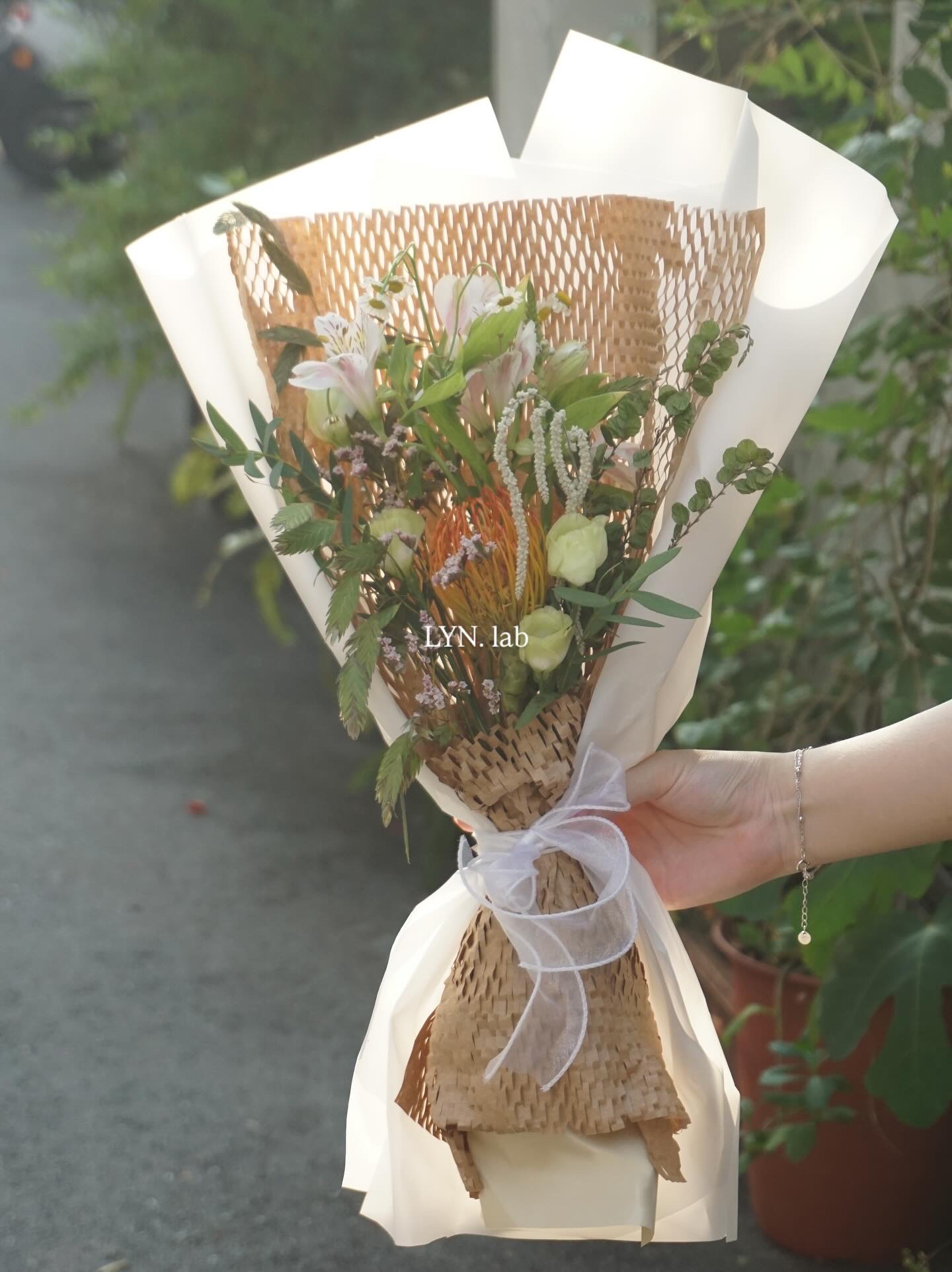 使用當季新鮮花材製作花束 (隨機花材,依當日訂購花材為主)。