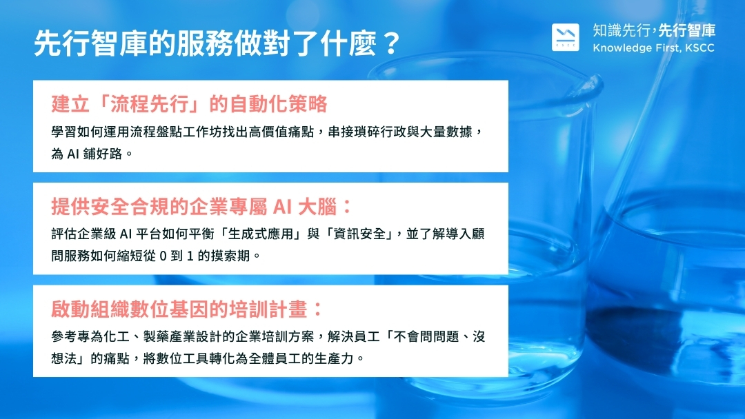 - 【困境揭密】 為什麼化工與製藥業導 AI 卻卡關?關鍵在流程,不在工具 。