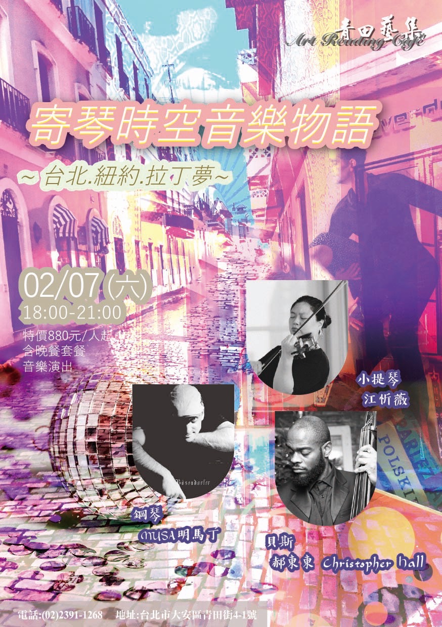 #青田藝集立春週六爵士拉丁跨界音樂夜:~ 【 寄琴時空音樂物語 】~ 台北.紐約.拉丁夢~