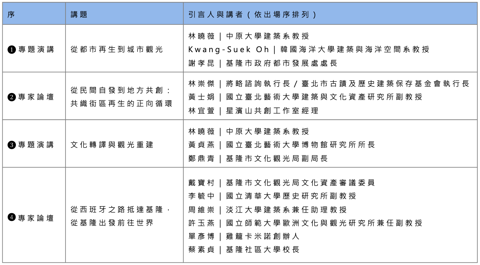 2026 年 1 月,我們以「文化觀光國際論壇」為起點,邀請來自不同城市、不同專業背景的國際與在地講者,從港口城市治理、歷史場景再現、街區與產業實踐,到文化轉譯與觀光發展等多元面向,共同討論基隆如何在全球港口城市的脈絡中,重新理解自身位置,並思考文化如何成為連結城市記憶、生活日常與未來發展的關鍵力量。誠摯邀請您蒞臨參與,與我們一同展開這場跨越歷史、城市與行動的對話。
