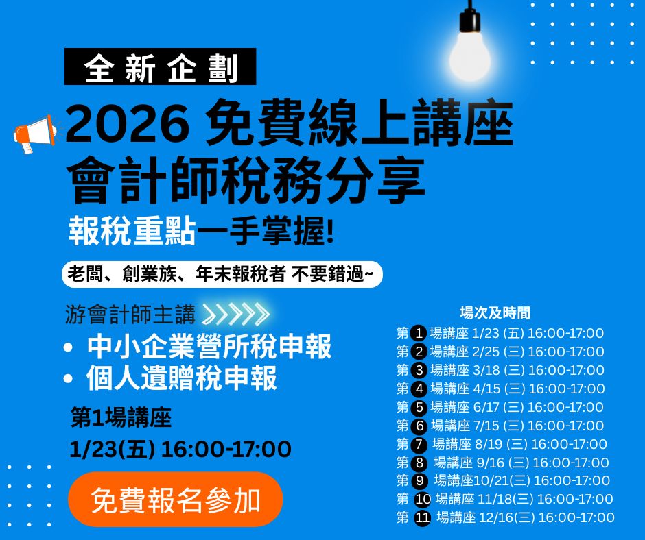 《2026 免費線上稅務講座》