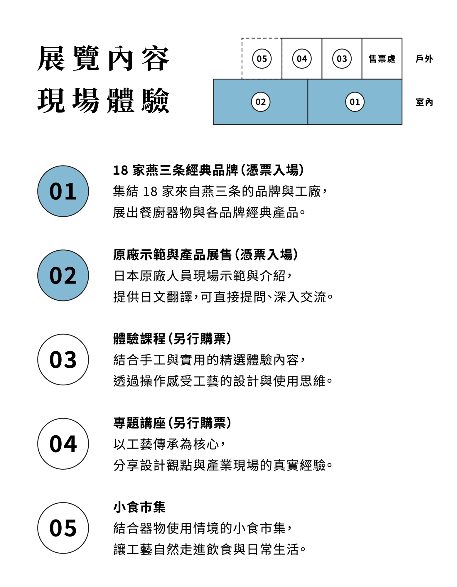 將工業材料推進成美學材料、把金屬加工轉化為生活工藝、使技術轉譯為設計語言,是位於日本新潟縣的燕三条被世界認識的樣貌。由日本的「燕三条貿易振興会」偕同台灣的「德貿股份有限公司」、「囍樹設計」、「鈑研所」共同策動,透過展覽、講座、工坊、選物販售,帶領大眾從傳承、生活、交流三面向,認識燕三条與其職人們所共享的過去、現在、未來。