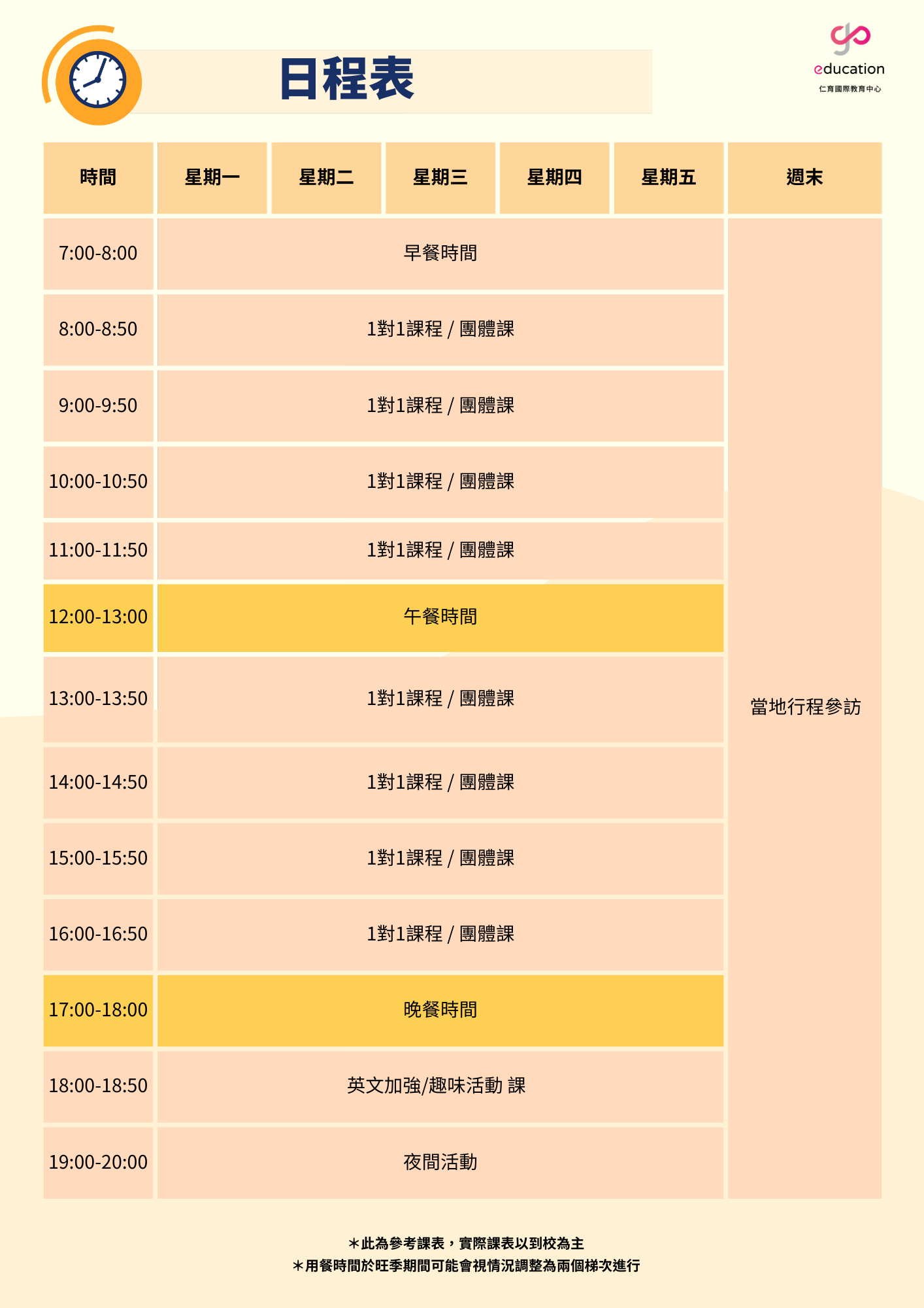 ▍參考日程表