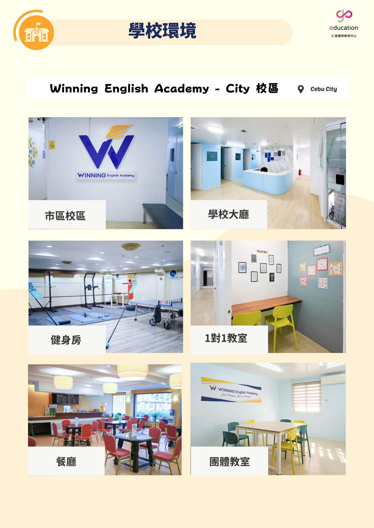 【2026 Winning 宿霧暑假遊學團】由 仁育國際教育 GoEducation 帶隊出發,2026 年暑假前往菲律賓宿霧,展開為期四週的星級英語冒險!Winning 語言學校始終致力於提供最佳品質的課程與學習環境,雖為台資學校,但能夠保持平衡的學員國籍比,給學員國際村般的學習環境。