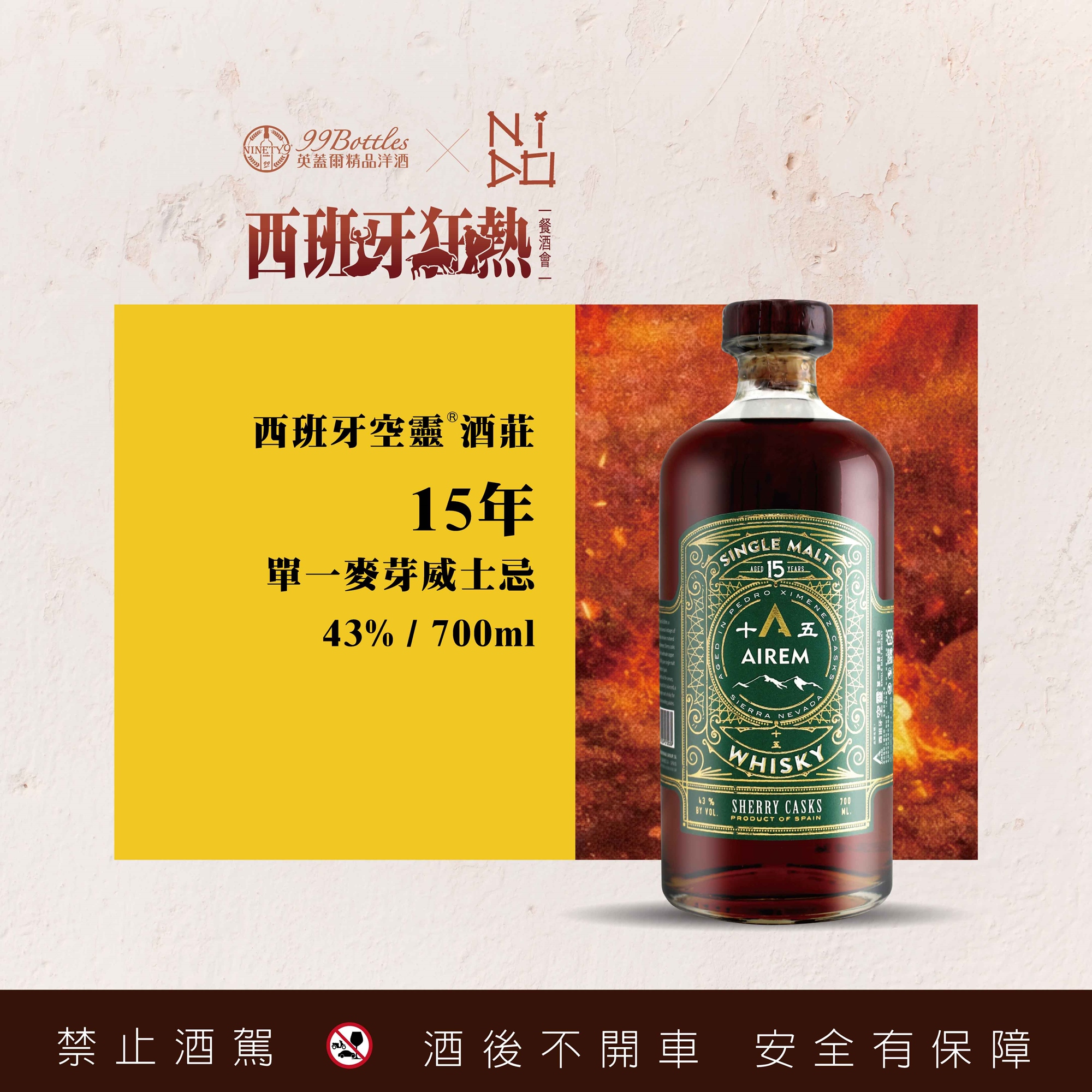 - 西班牙空靈AIREM 15年單一麥芽威士忌43% (價值$4,200)