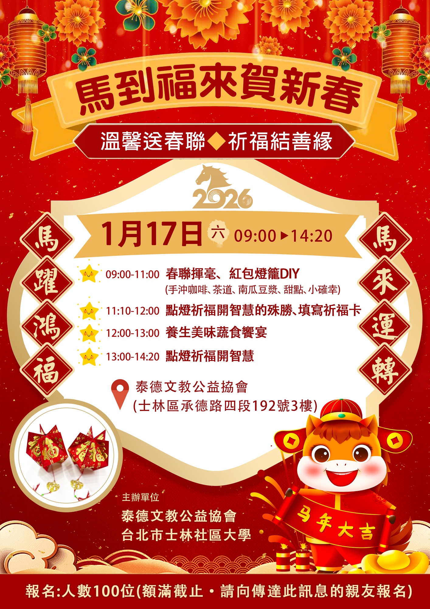 《限量20位》【溫馨送春聯◆祈福結善緣】馬到福來賀新春
