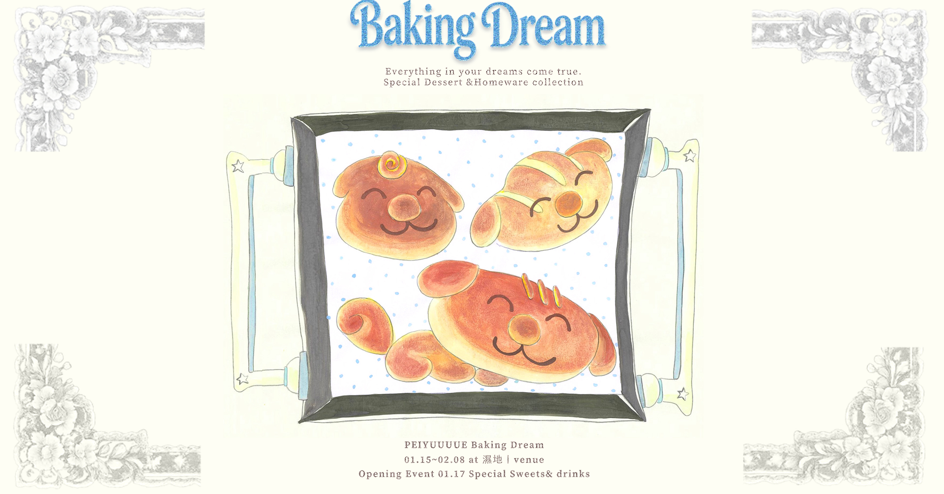 社交時差首檔展覽,邀請藝術家 peiyuuuue,在入冬時刻為大家帶來香甜蓬鬆的「Baking Dream」。創作不只是筆尖線條,peiyuuuue 更於日常中透過各種烘焙形式,將靈魂角色 happy 實體化,每一次現身都是讓人瞬間融化的滿分可愛!
