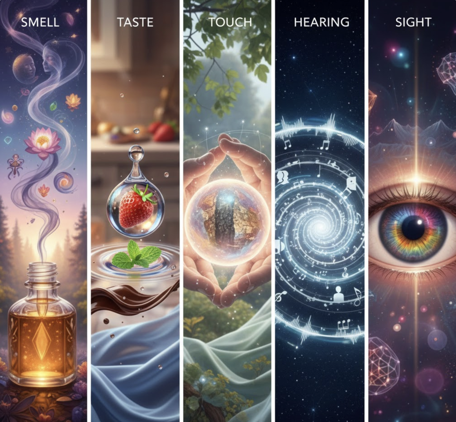 來自於對 五感視覺、聽覺、味覺、觸覺、嗅覺 的細膩運用