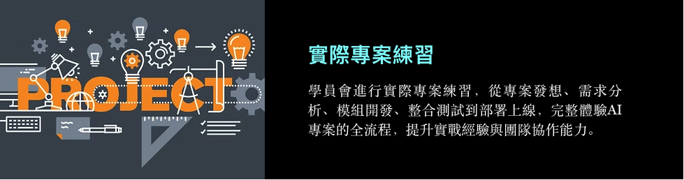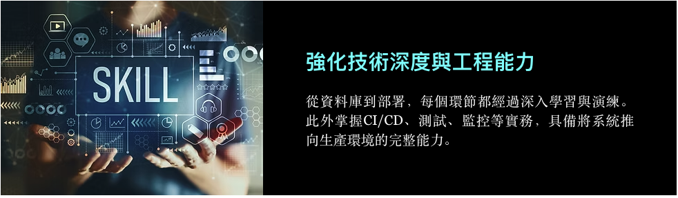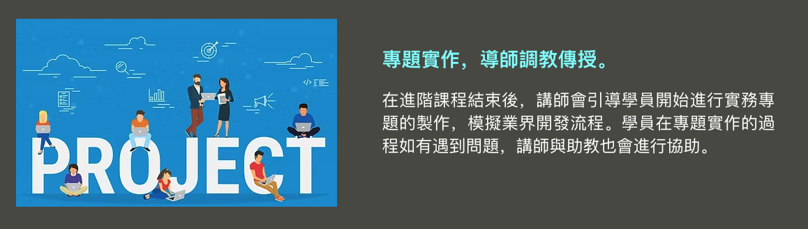 系統化教學打通任督二脈,獨家專案實作扎穩職場馬步,上完課程後你將學習👇