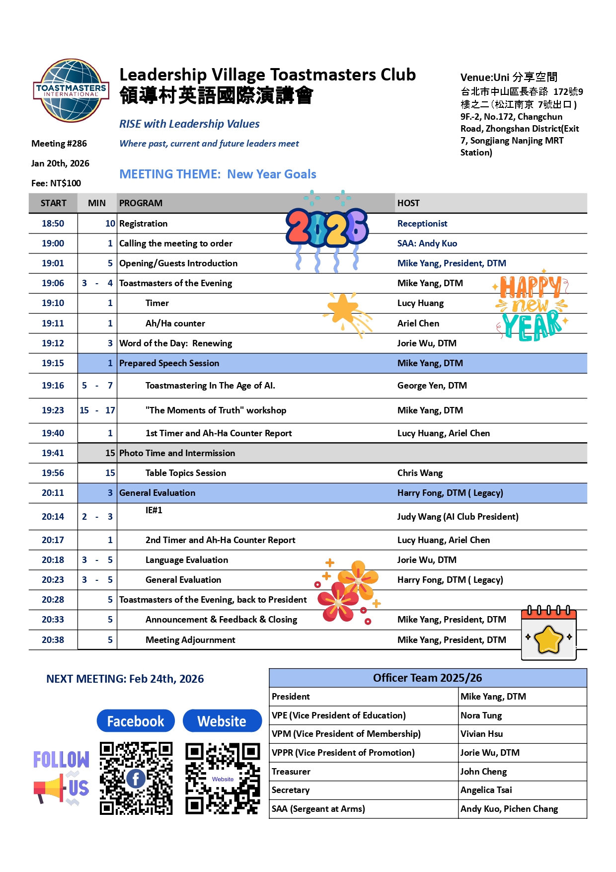 “在領導村國際演講社,我們將每月的會議轉變為溝通、反饋和自我成長的旅程。我們是一個相互支持的社群,在這裡,每個聲音都獲得信心,友誼蓬勃發展,每個成員都能發現內在的領導者。