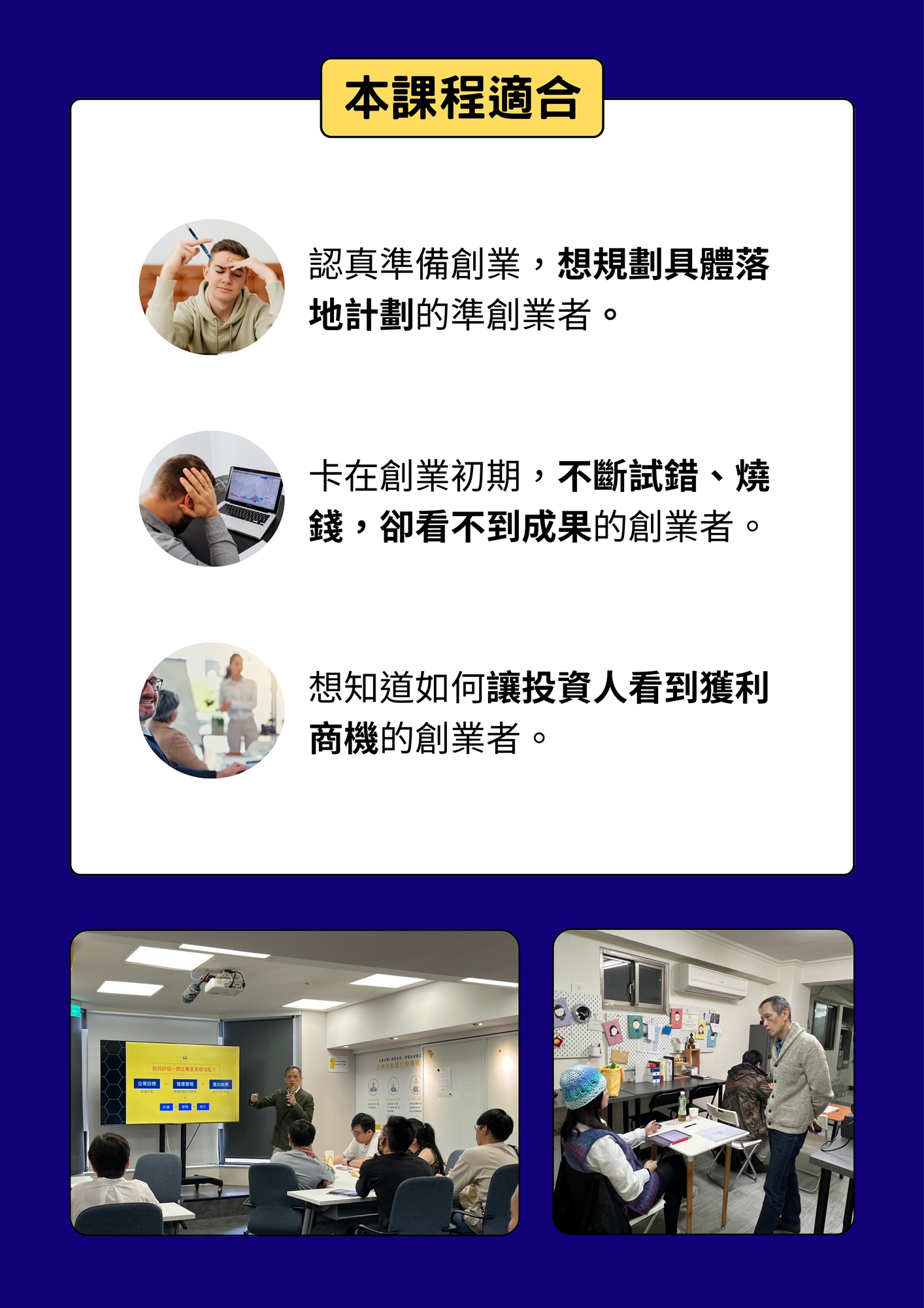 - 已經創業的人:需要優化現有商業模式,尋找獲利突破口。