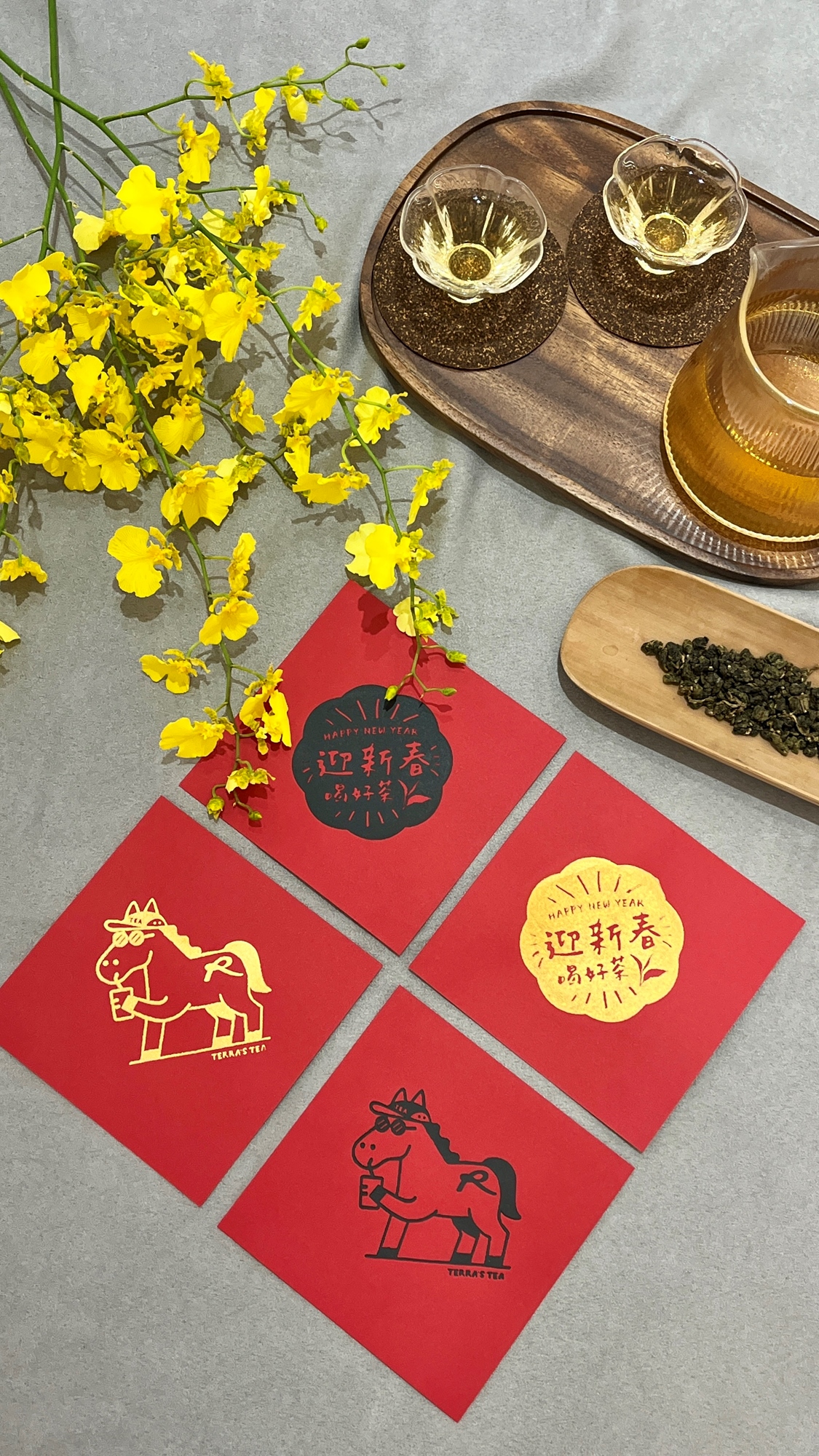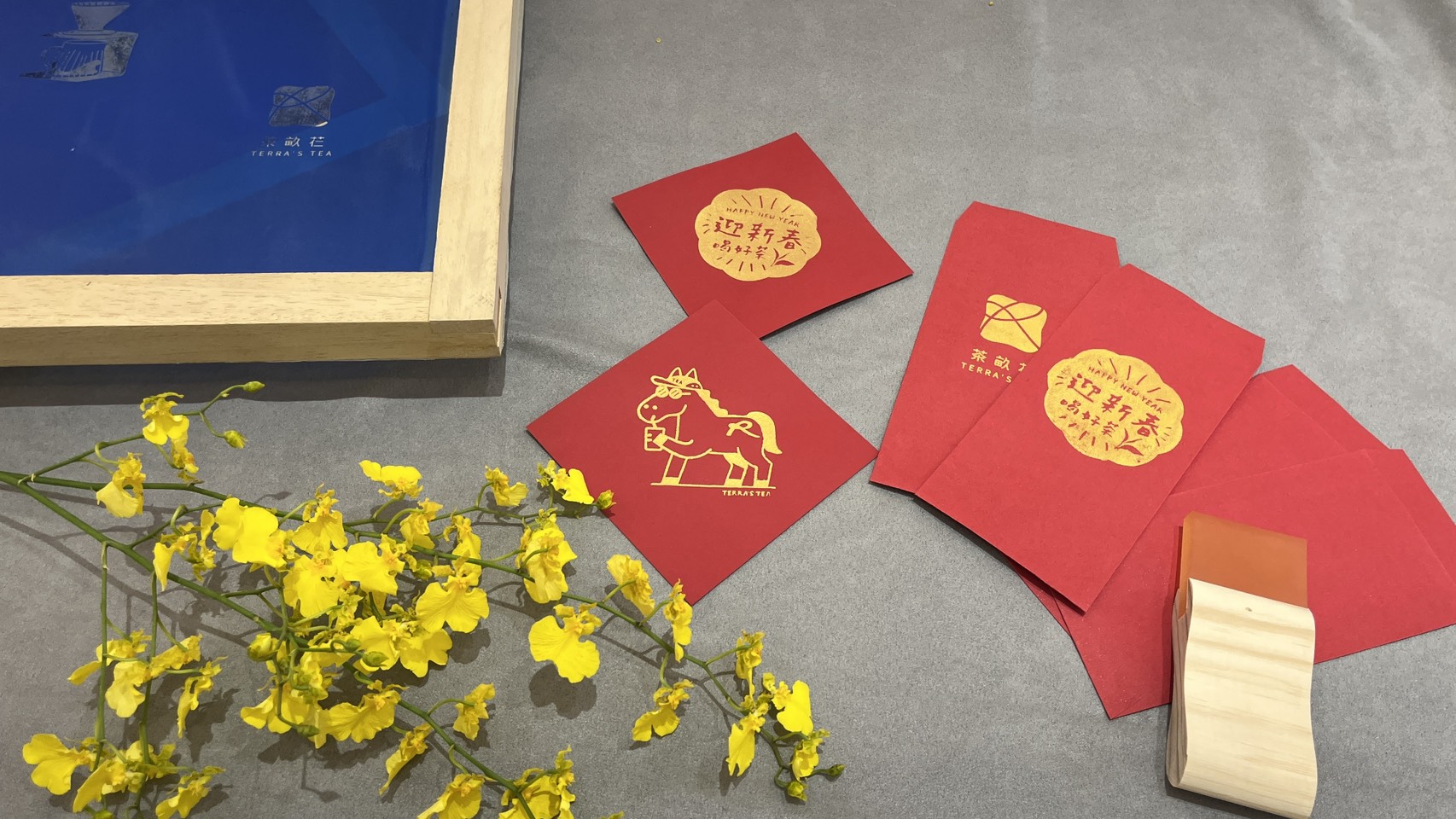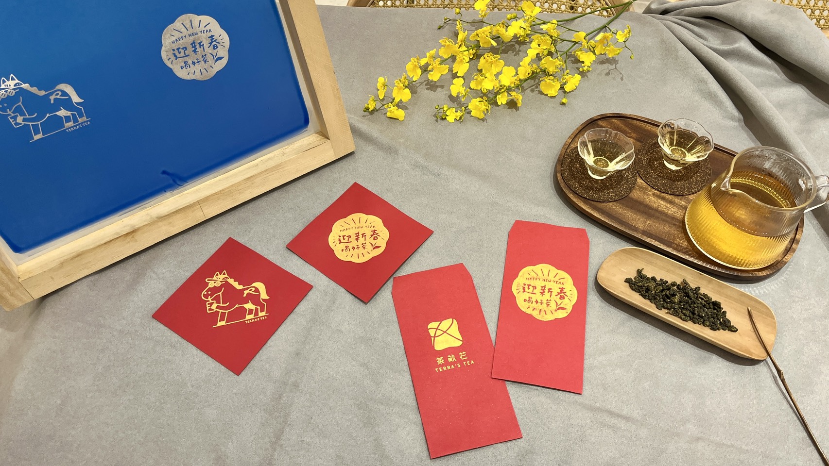 課程中,將親手完成 兩款迎春紅包袋與三張春聯,從構圖、拓印到成品完成,循序引導、輕鬆上手。搭配茶畝芢精選茶飲與茶食,在溫暖的茶香與風味感受之中,讓創作不只是手作,更是一段專注於當下的時光。