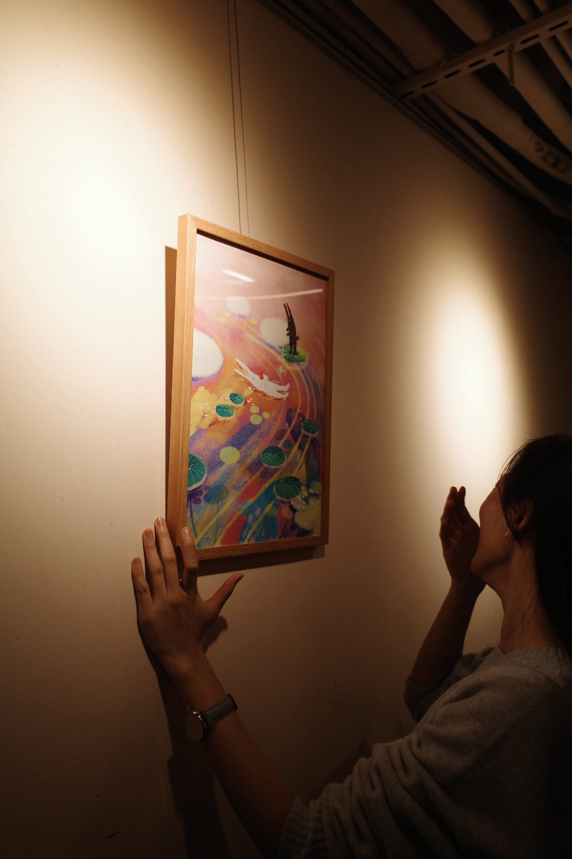 場勘時,看到又一間商行裡,人們在燈光下,一起吃飯、交談,那樣溫暖真實的片刻,成為這一系列作品的起點。這是一系列迎接新年到來的插畫創作,在季節轉換之際,對喜歡的人事物,伸出雙手、溫暖擁抱,在生活中,彼此作伴。