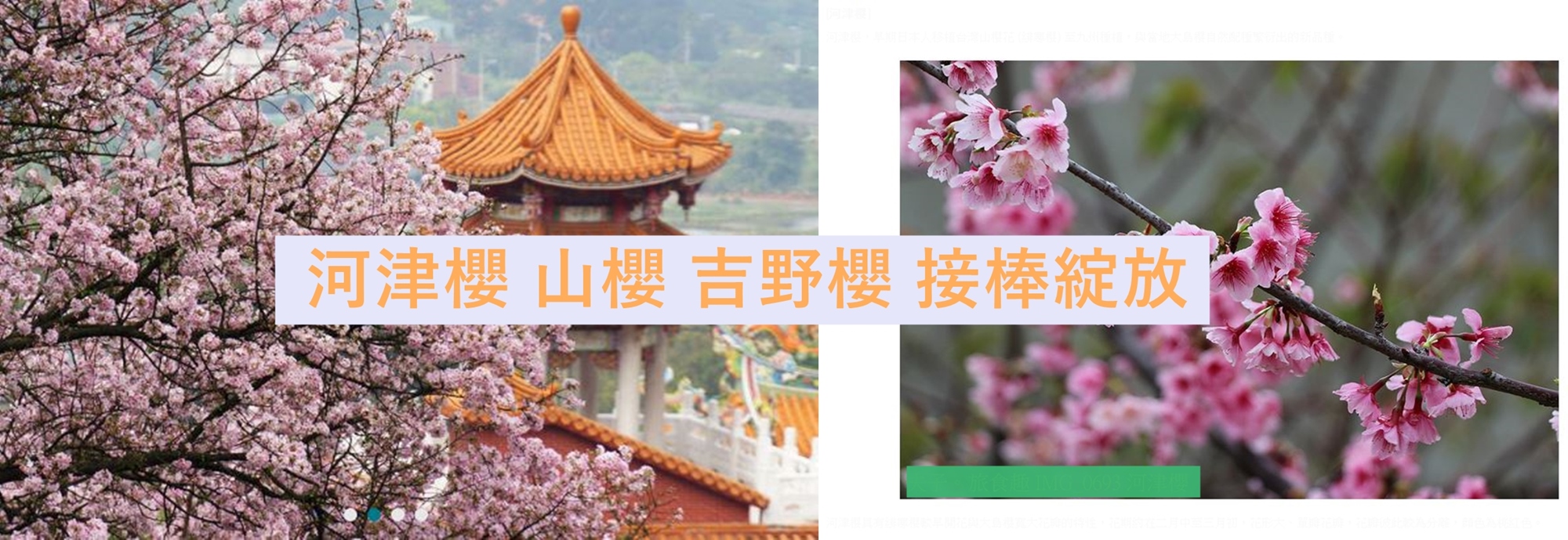 1月下旬 - 2月初: 後山「三色櫻」先行綻放,粉、紅、白交織。