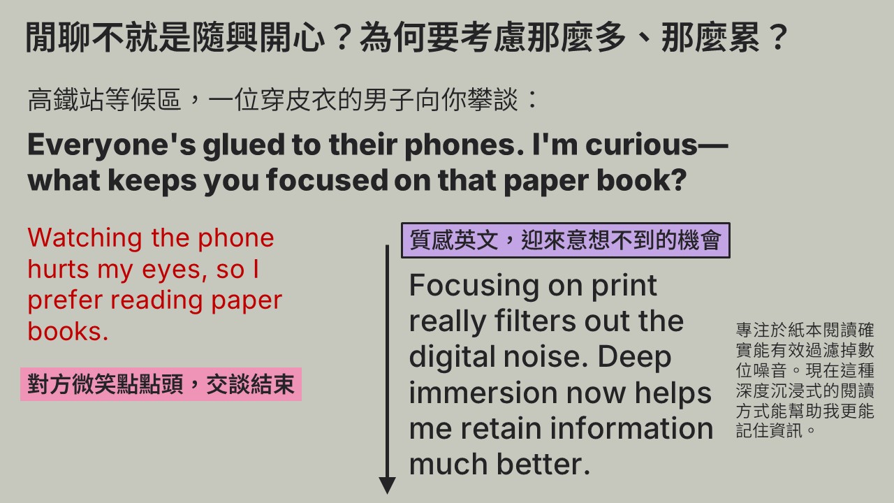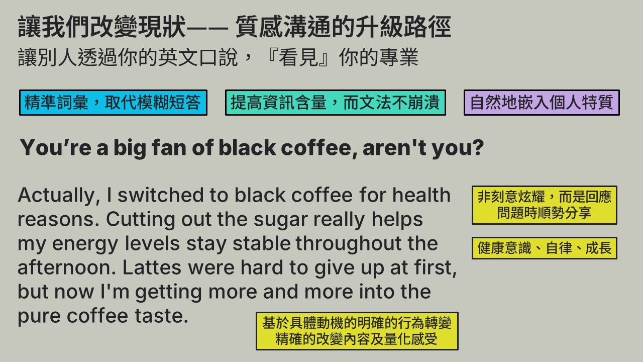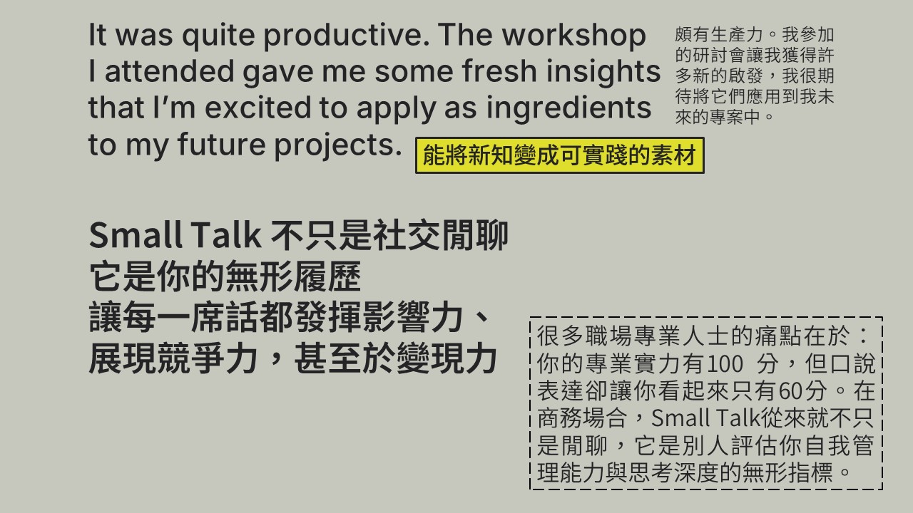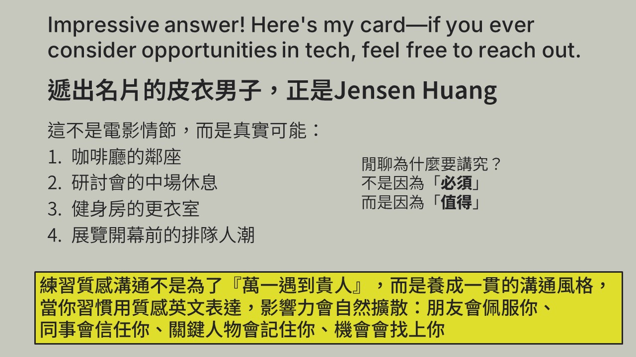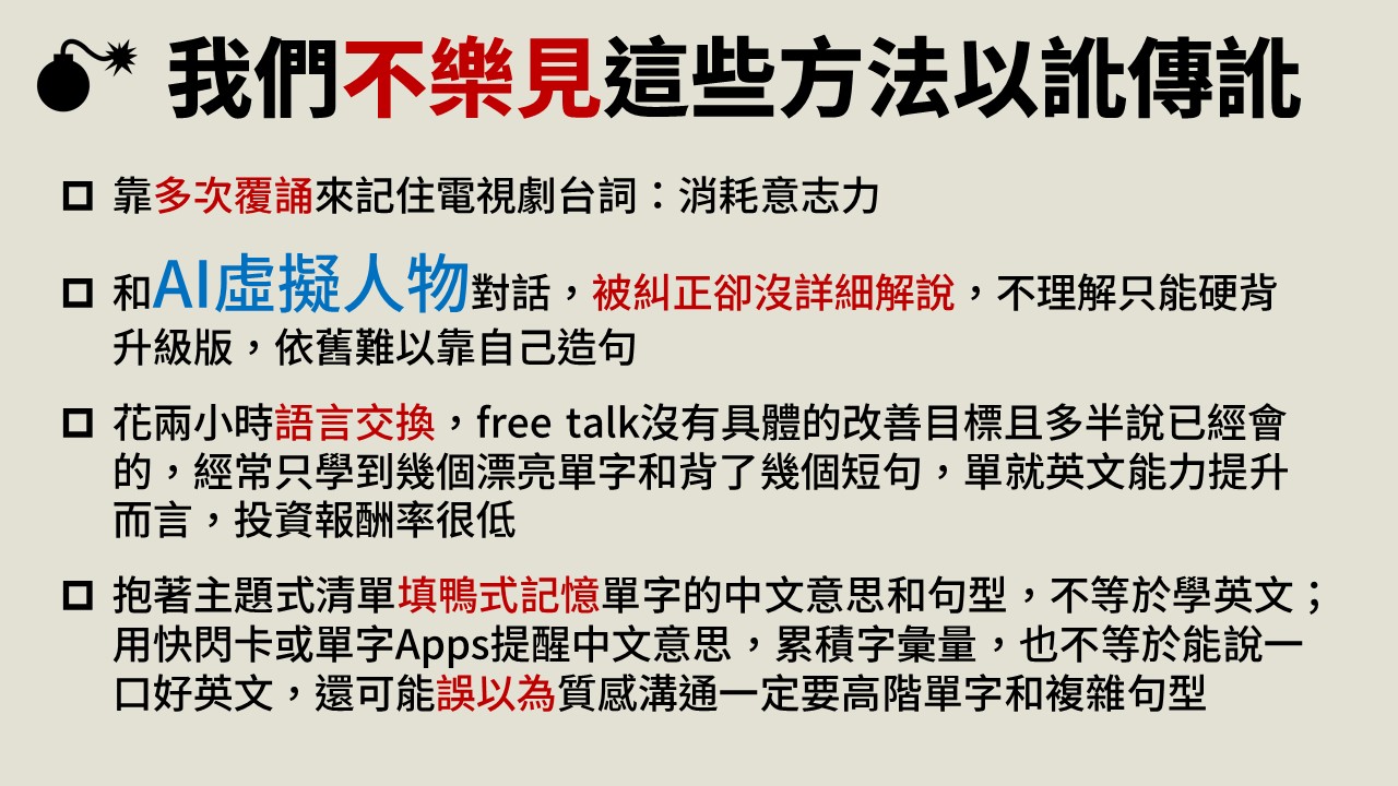適合任何英文程度,除核心策略外,講師會依程度調整方向與內容。