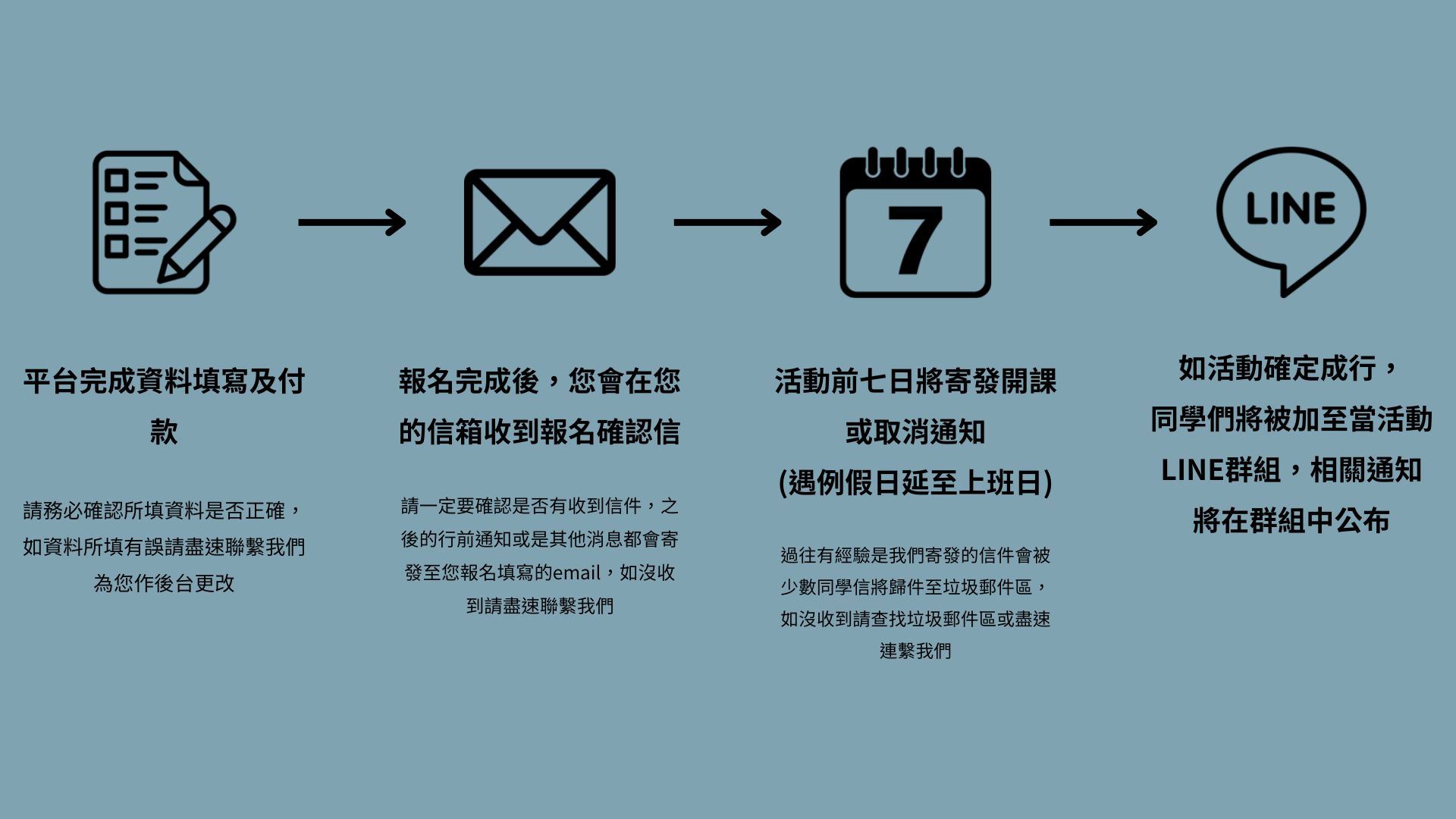 五、確定成行後會把大家加至活動LINE 群組,後續活動溝通將在LINE群組上進行。