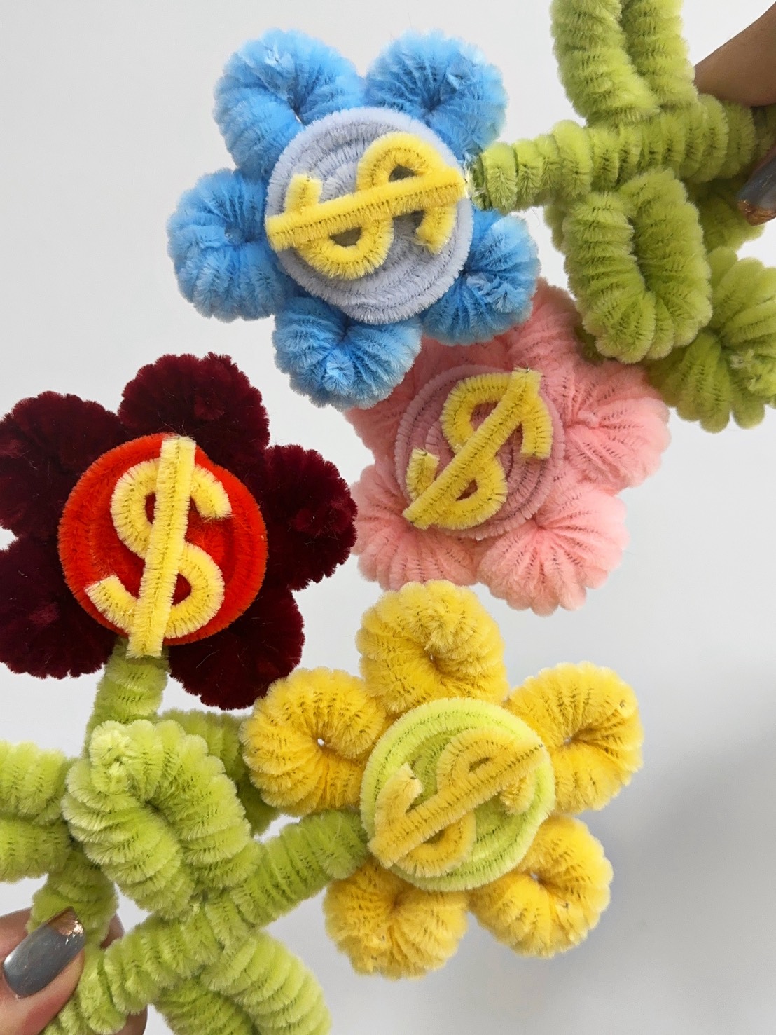 只需運用扭扭棒纏繞即可完成一個毛絨新春煙花環、配色豐富,還有新春有錢花等作品可以完成帶回家