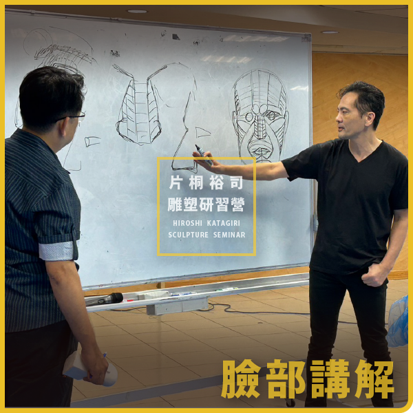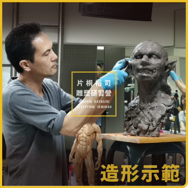 雕塑家的寶典《雕塑解剖學》《動物雕塑解剖學》,片桐老師親自為我們講授創作角色造形、人物雕塑的思維方式、3次元的觀察法、如何構築優美的設計等等,具備真實感且魅力十足的雕塑能力、設計能力的講座。並搭配講義進行個別的實作指導。