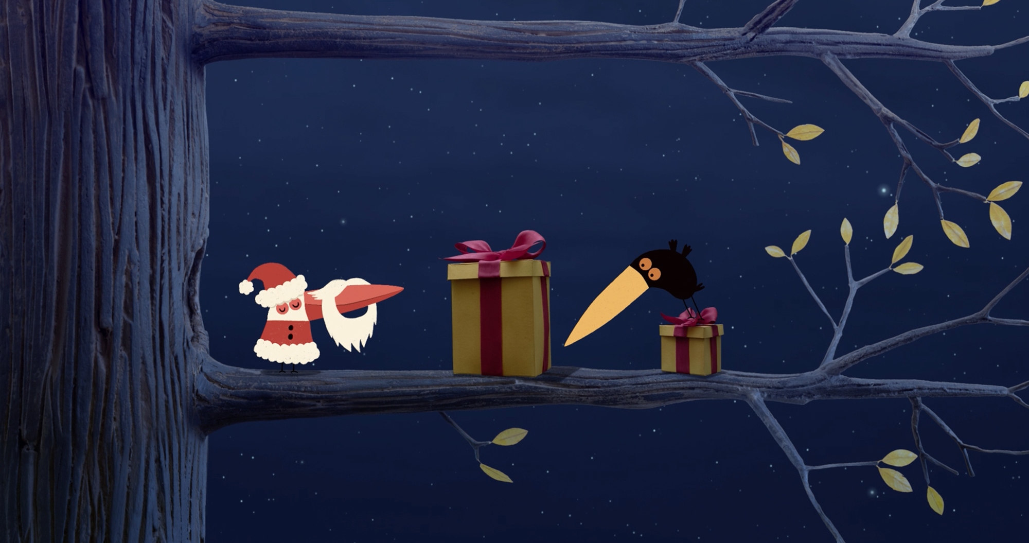 聖誕節到了,兩隻小鳥分別寫信,祈求不同的禮物。它們興奮地睡去,醒來後卻發現聖誕樹下只有一個盒子⋯⋯。