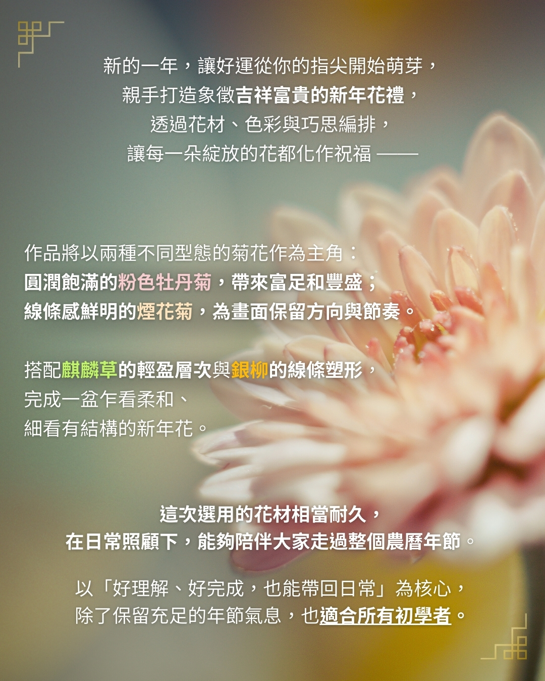 新的一年,讓好運從你的指尖開始萌芽, 親手打造象徵吉祥富貴的新年花禮,