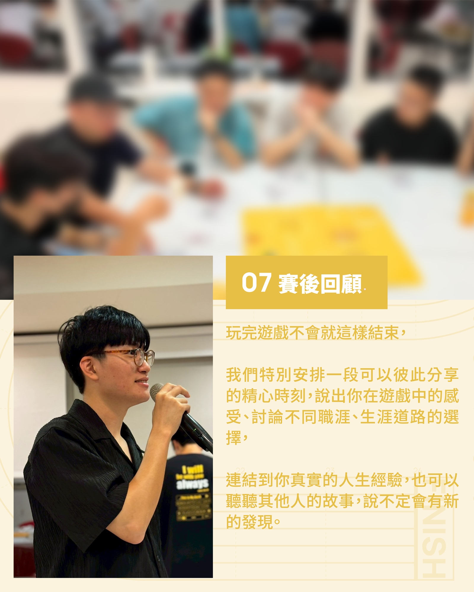 本次活動將透過原創的桌遊《人生賽道》,引導參與者在輕鬆、安全的氛圍中,回顧與思考自己的職涯選擇、人生節奏與價值觀。