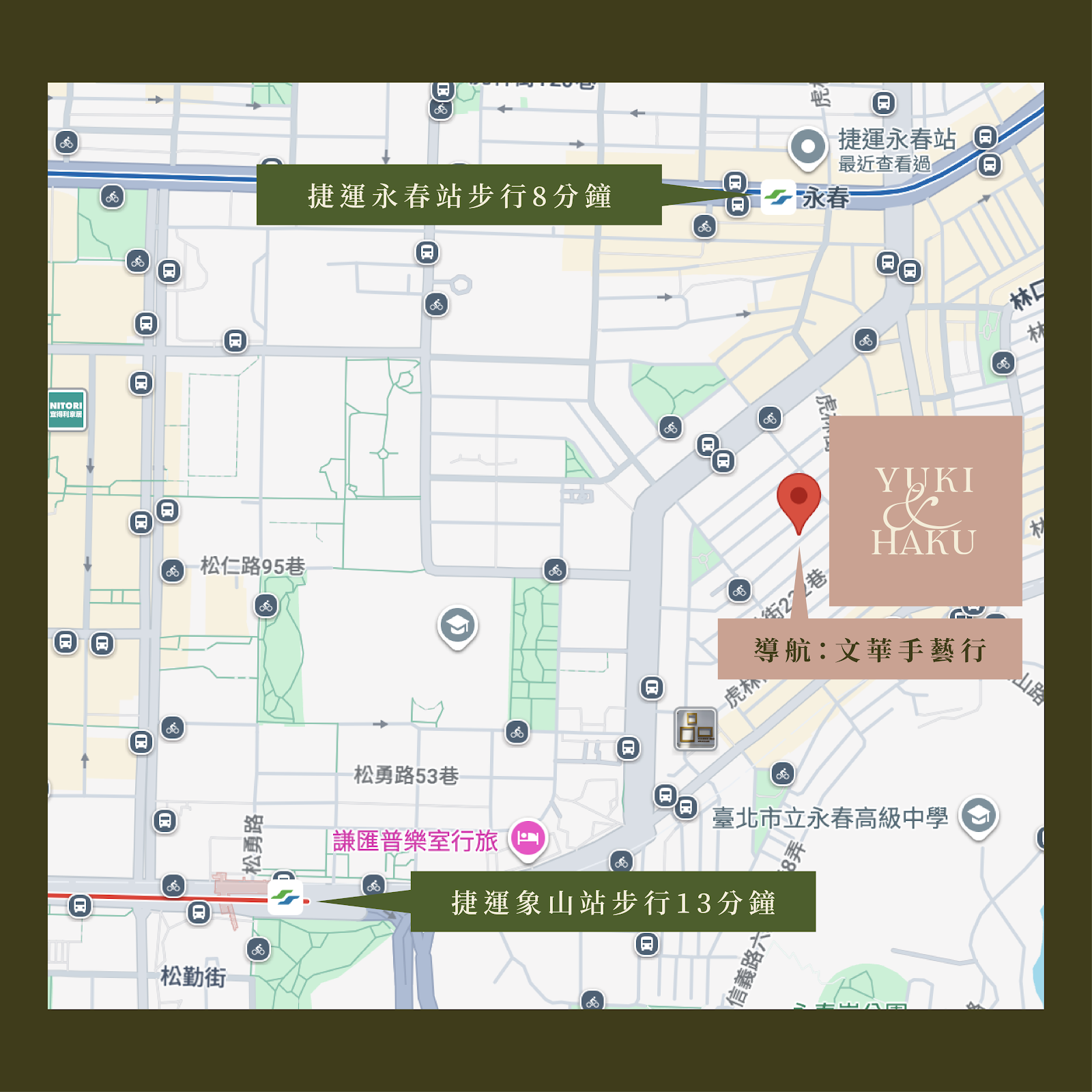 從捷運站騎 YouBike 過來都只要5分鐘!店面附近就有停靠站( 松德路169巷口 )