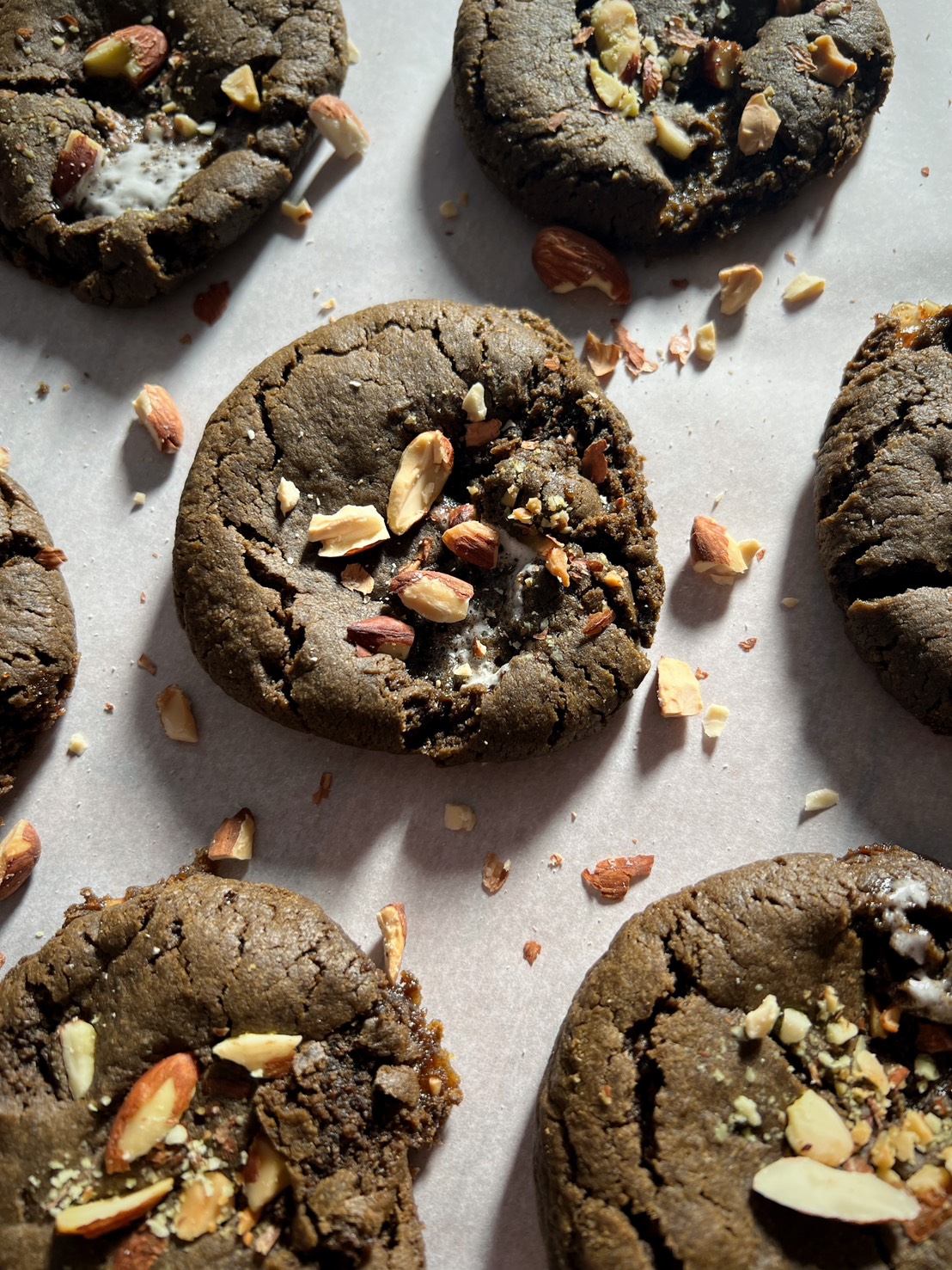 手作甜點|九州焙茶棉花糖軟餅乾,將有2-3片軟餅乾成品。