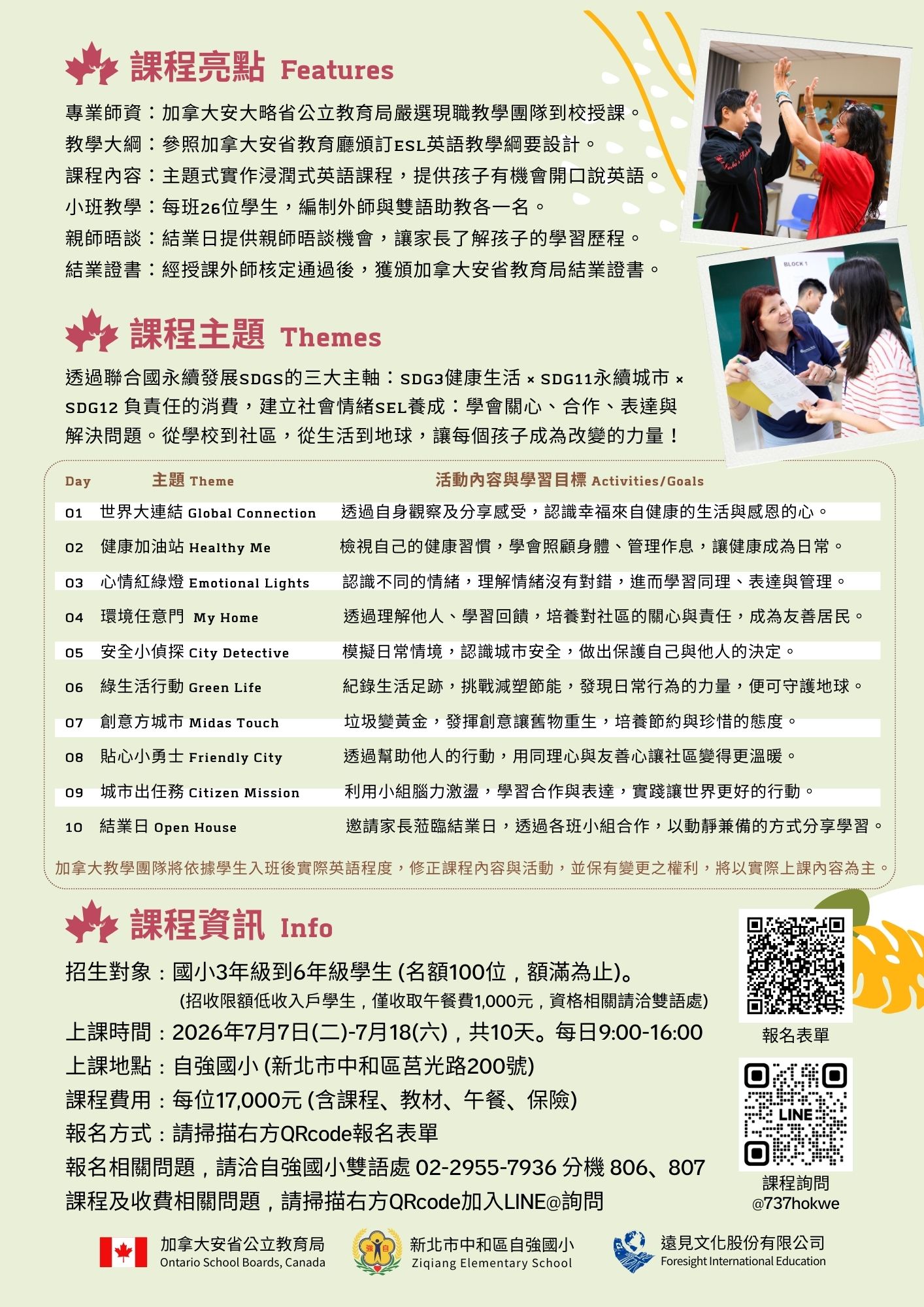 主辦單位:加拿大安省公立教育局、新北市中和區自強國小