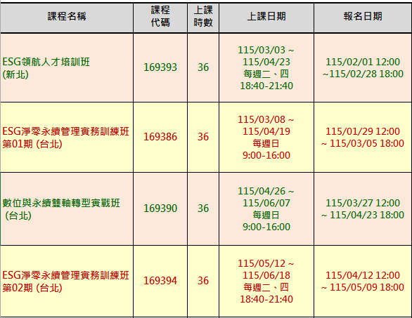 2️⃣ ESG 淨零永續管理實務訓練班(第 01 期)
