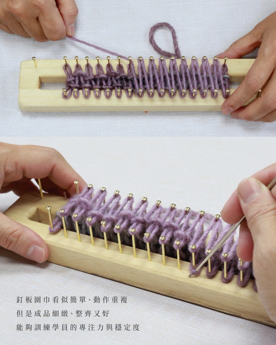 課程將使用釘板與專用挑鉤針(非縫針),