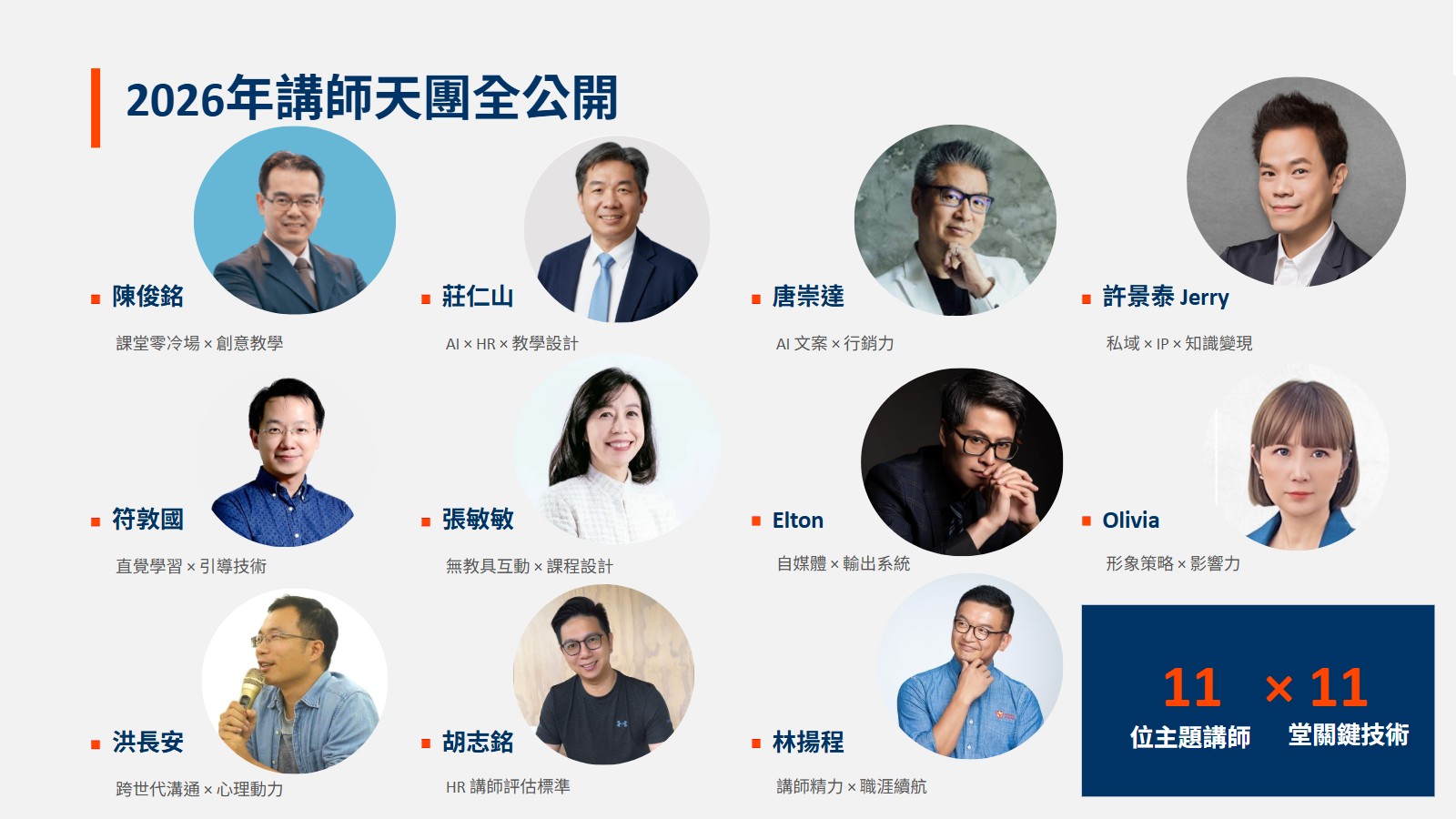 2026年度會員規劃重點包含共學升級、共創加重及共享舞台,主題涵蓋善用AI工具、提升行銷能力以及扎根講師職能。