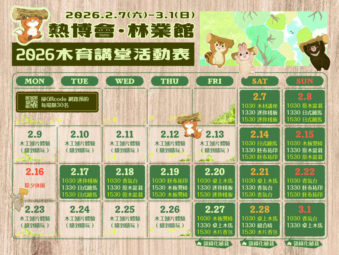 更多免費木作DIY課程,倘佯於溫潤的木材溫潤中體驗木作之美及森林固碳的效用。
