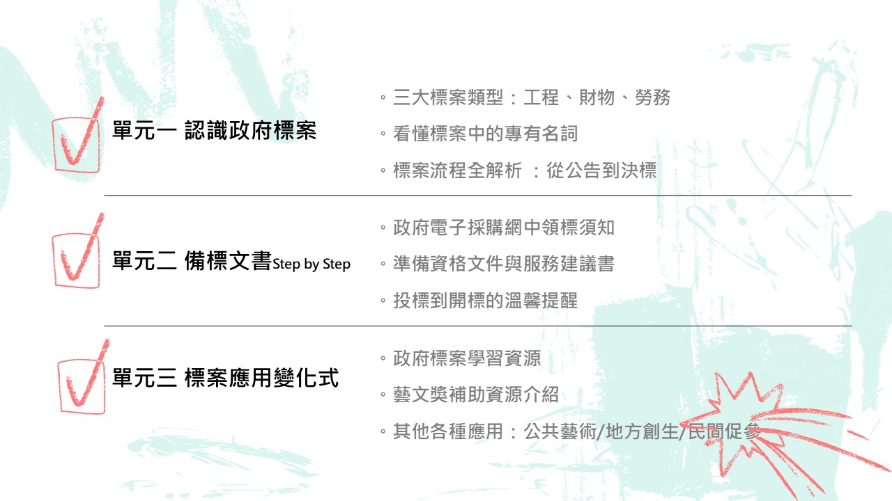 課後加贈「標案入門—文書小白的生存守則」影音課,可於課後無限觀看複習