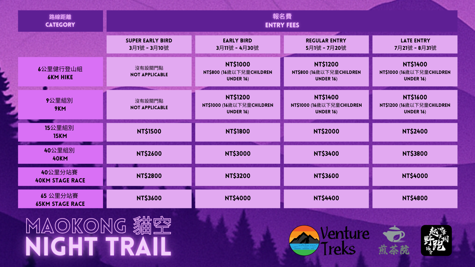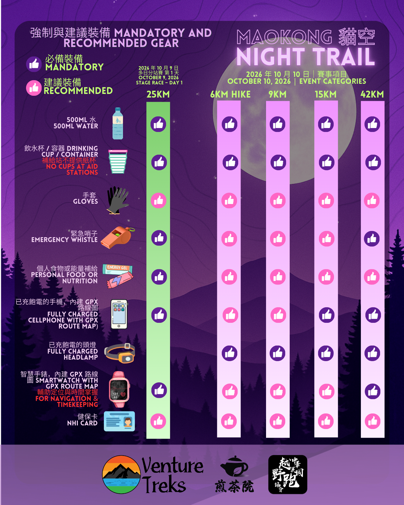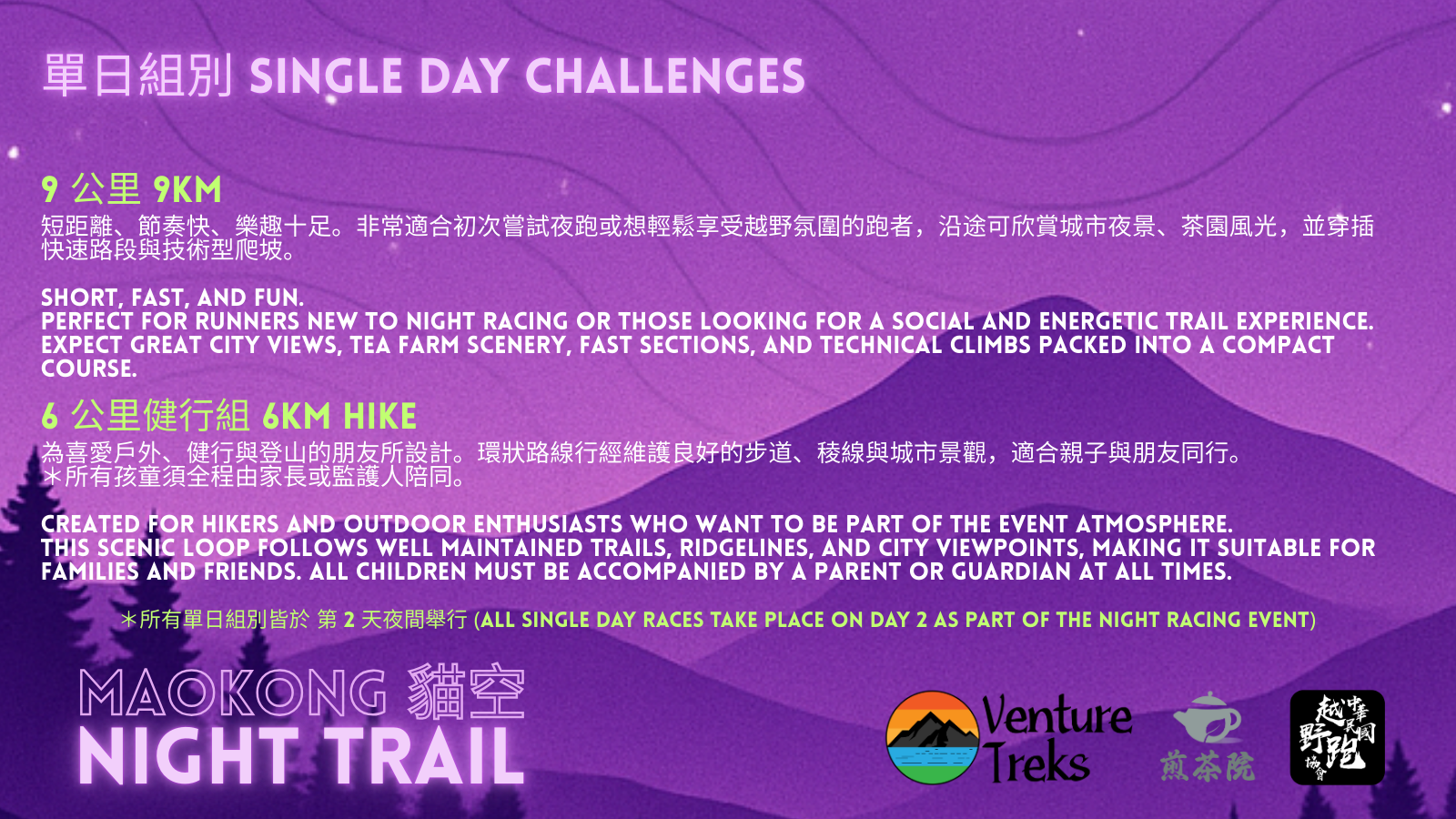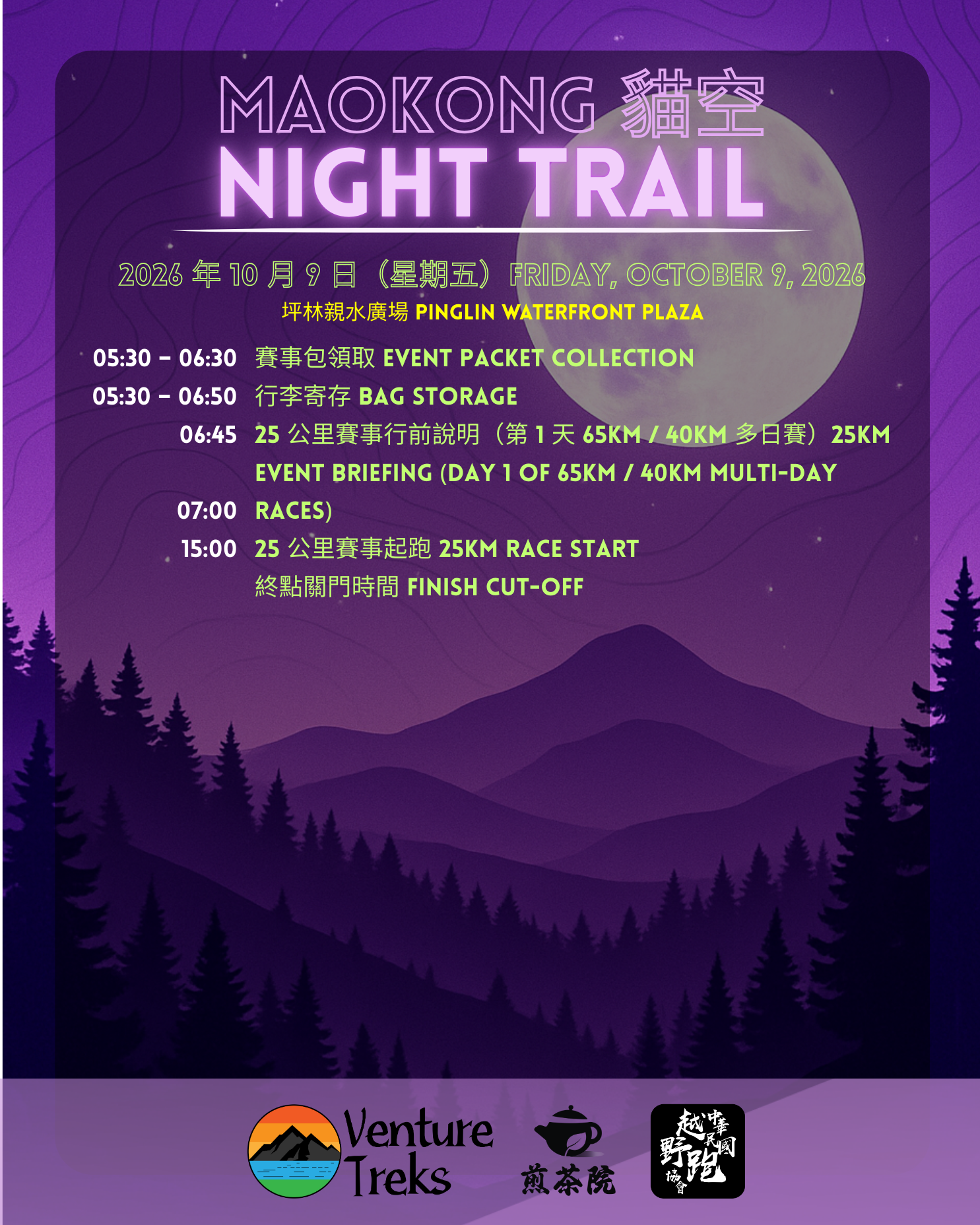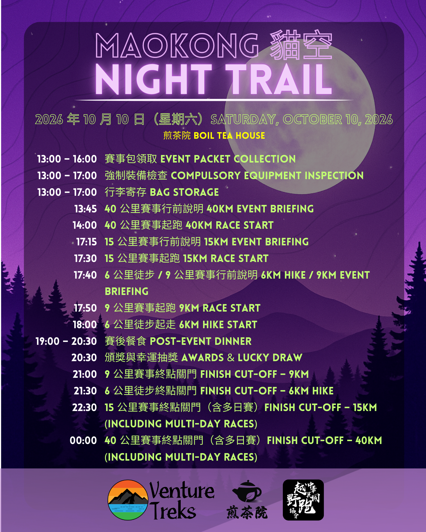 All other related event information can be found on our website here: MAOKONG NIGHT TRAIL