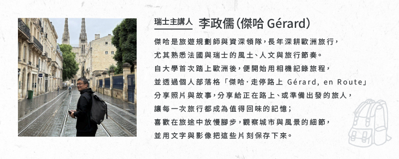 我們特別邀請旅遊達人親自主講,一起走進那些最值得停留的風景!