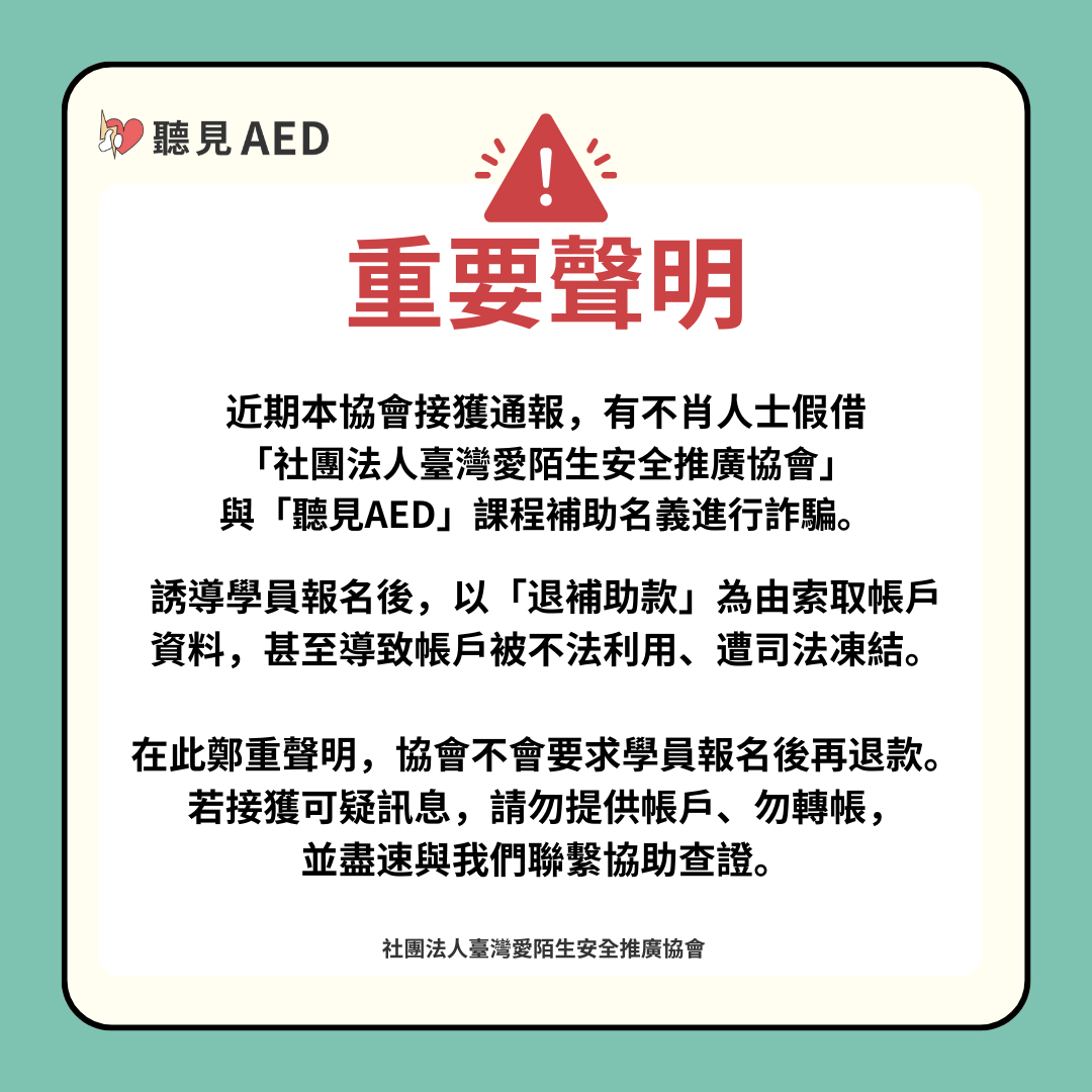 單位名稱: 社團法人臺灣愛陌生安全推廣協會