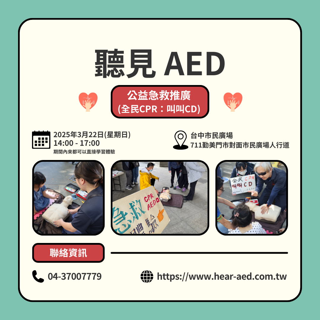 本活動為公益推廣,目的是讓更多人具備基本急救觀念與技能,體驗時間約10~15分鐘,不提供證照;如有證照需求,歡迎另行報名相關證照課程。