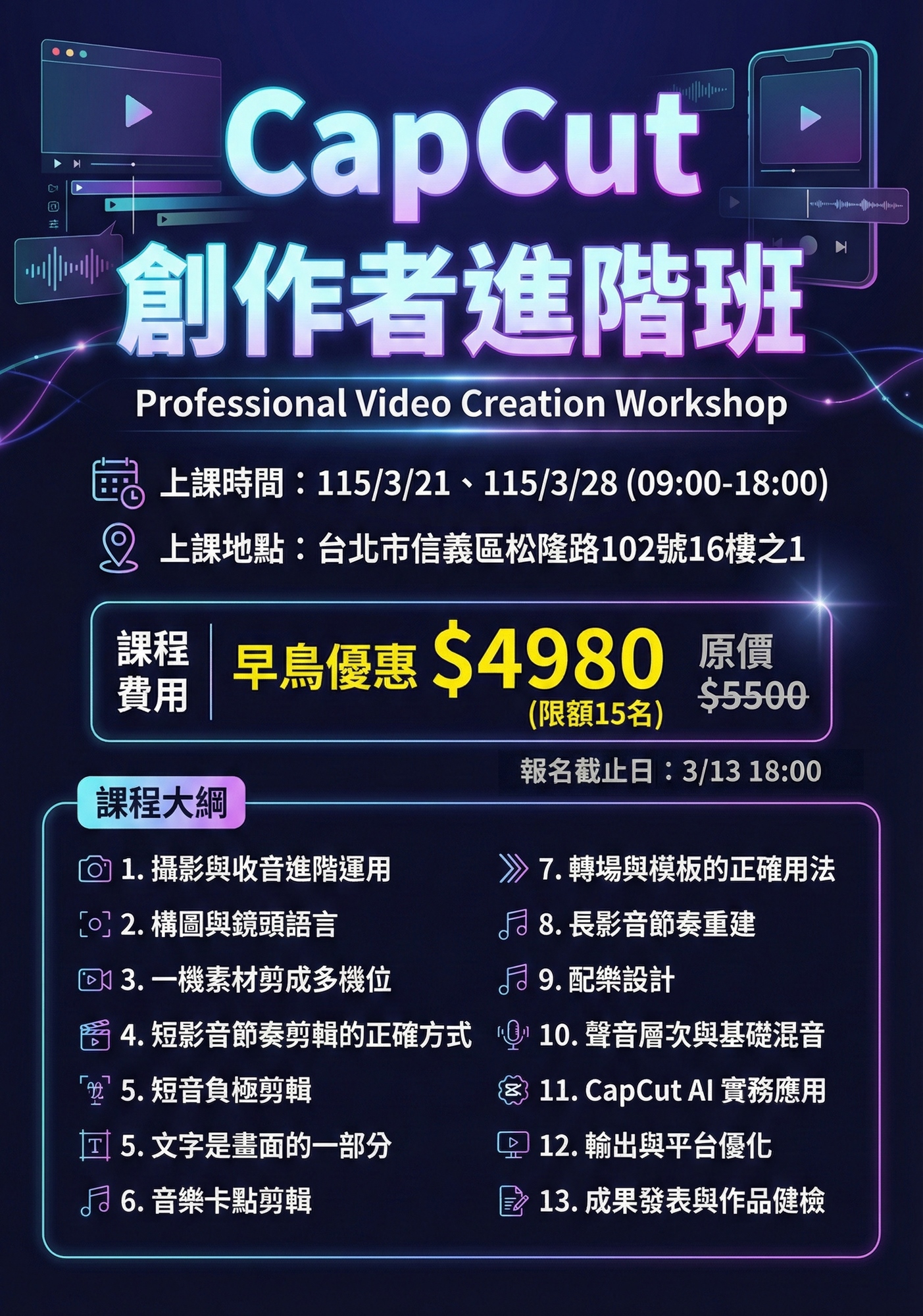 ✔ 不只剪短影音,也教你長影音節奏與結構