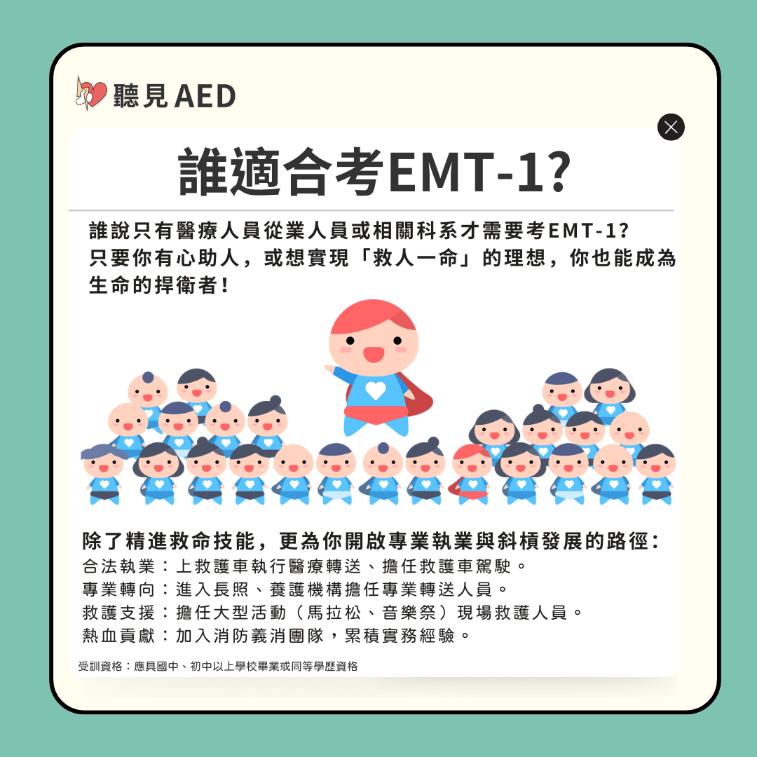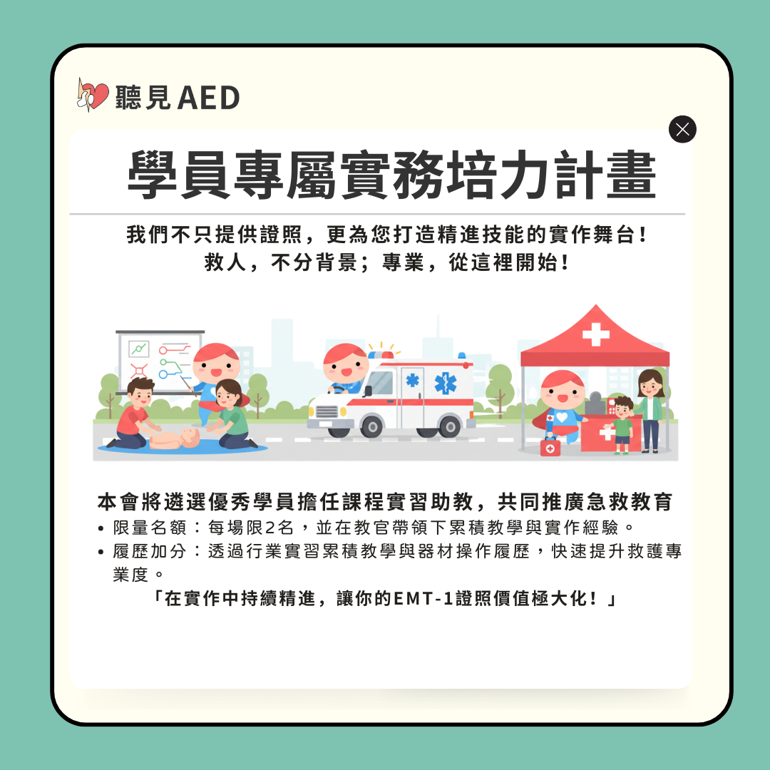 「救人,不分背景;專業,從這裡開始。」 立即報名,開啟你的救護人生!